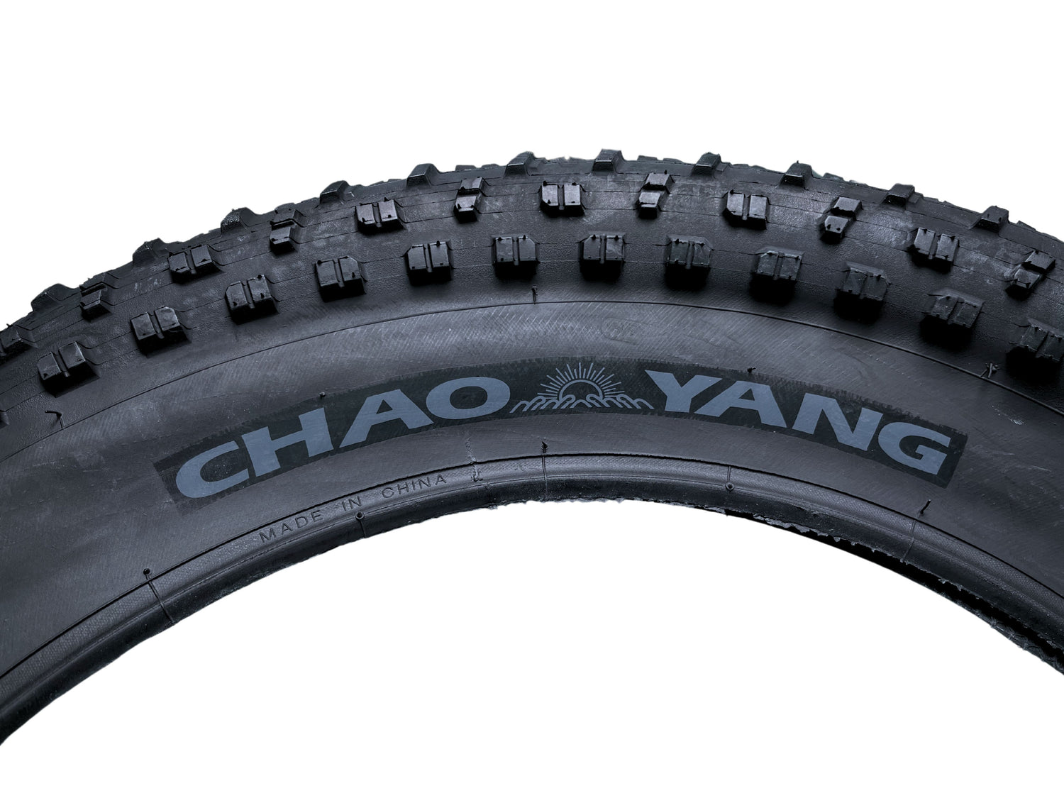 This 20"x4.0" knobby tire from Chaoyang is the original tire used by many brands including HeyBike, Lectric, and ANCHEER. This tire is popular because it is packed with many high-quality features. The tire's meaty knobs create the ultimate aggressive all-mountain/freeride tire and provide predictable cornering and excellent braking traction in all conditions.