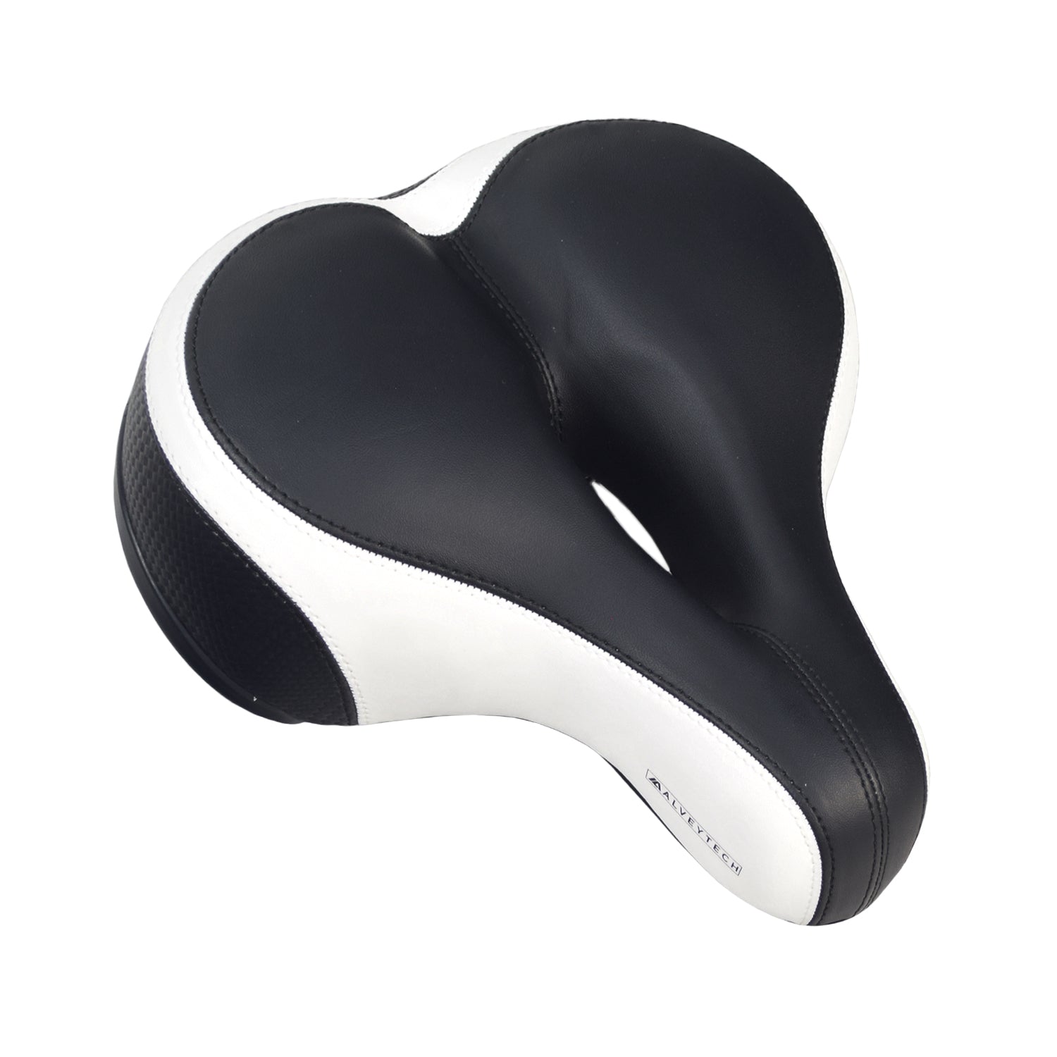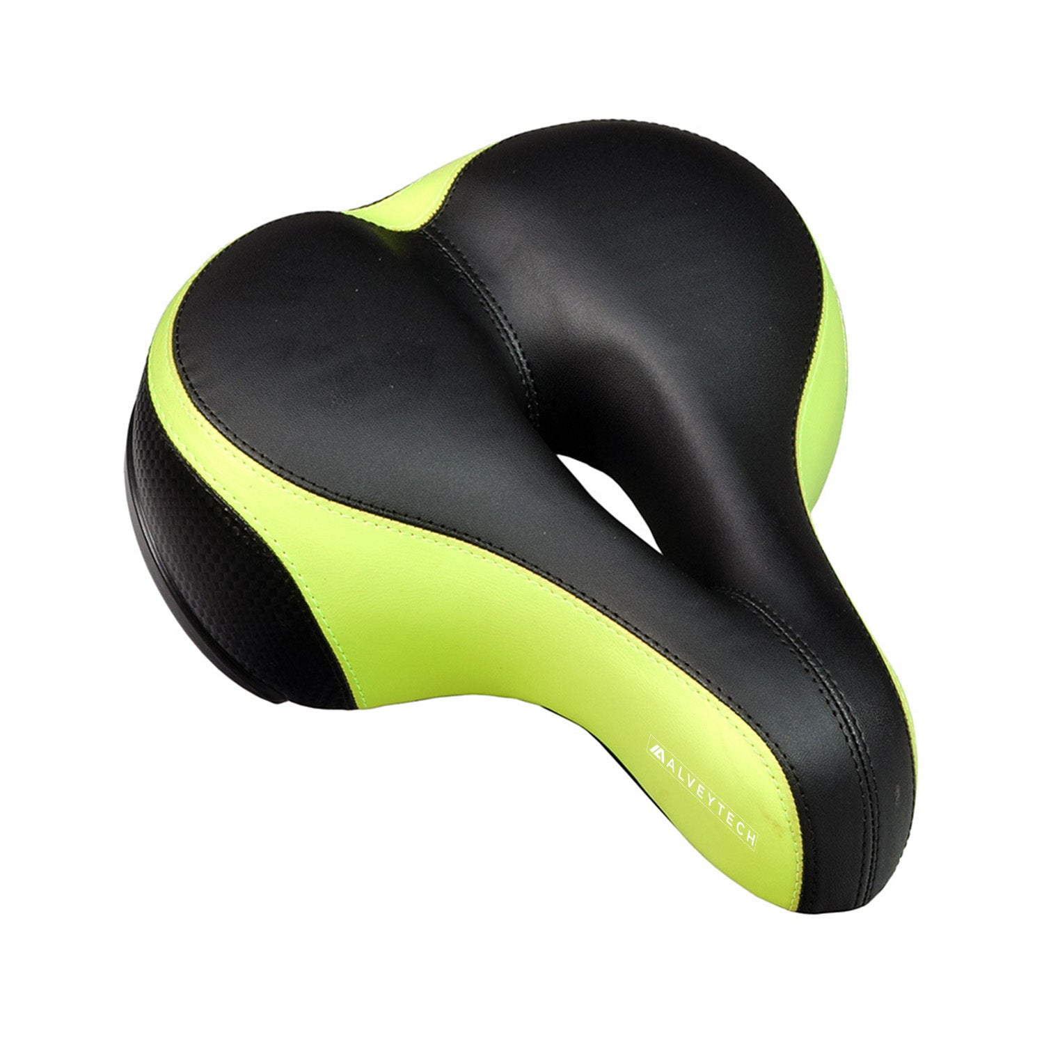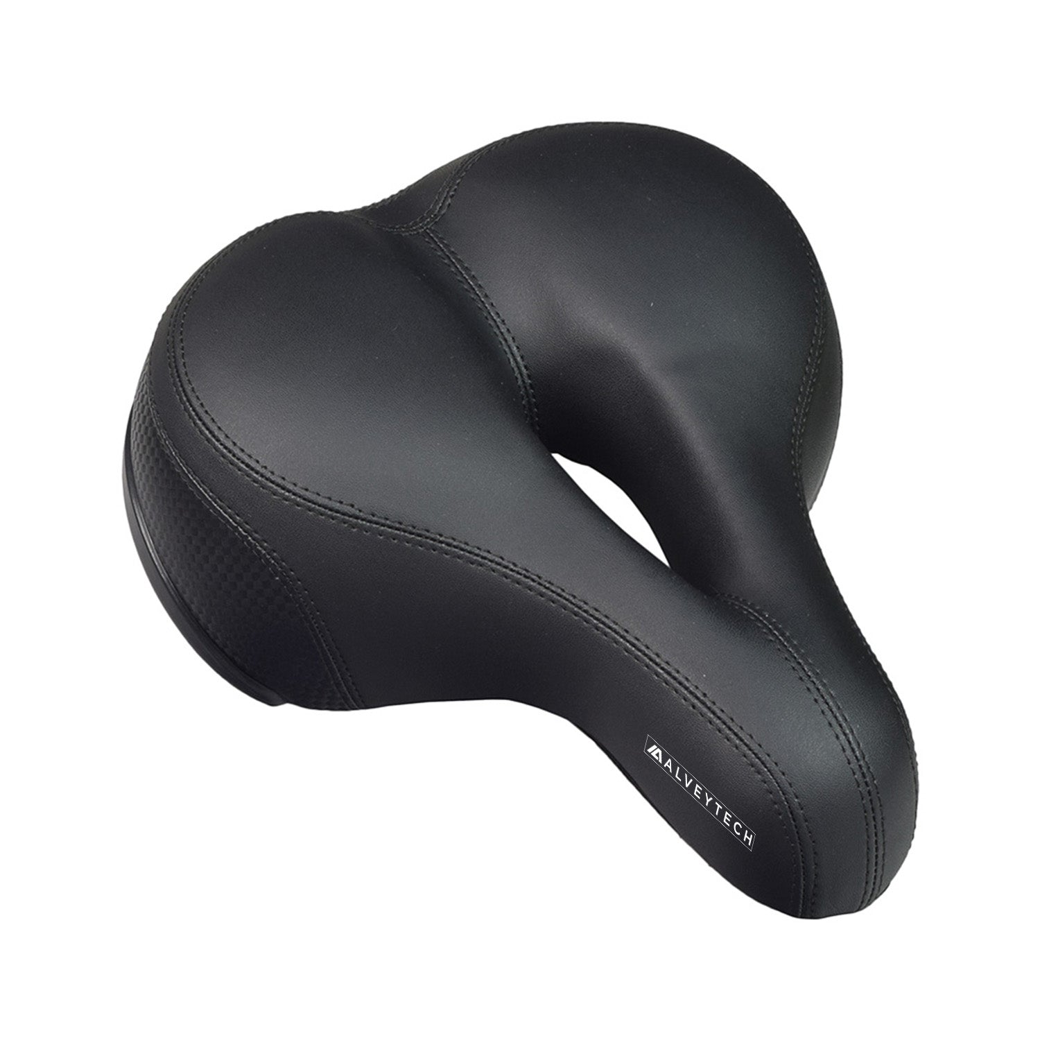 This AlveyTech seat features soft and cushiony padding as well as the traditional coil spring suspension found on classic cruiser-style bike seats. The anatomic relief design ensures a more comfortable ride for the cyclist without the pinching associated with many traditional bicycle seats.