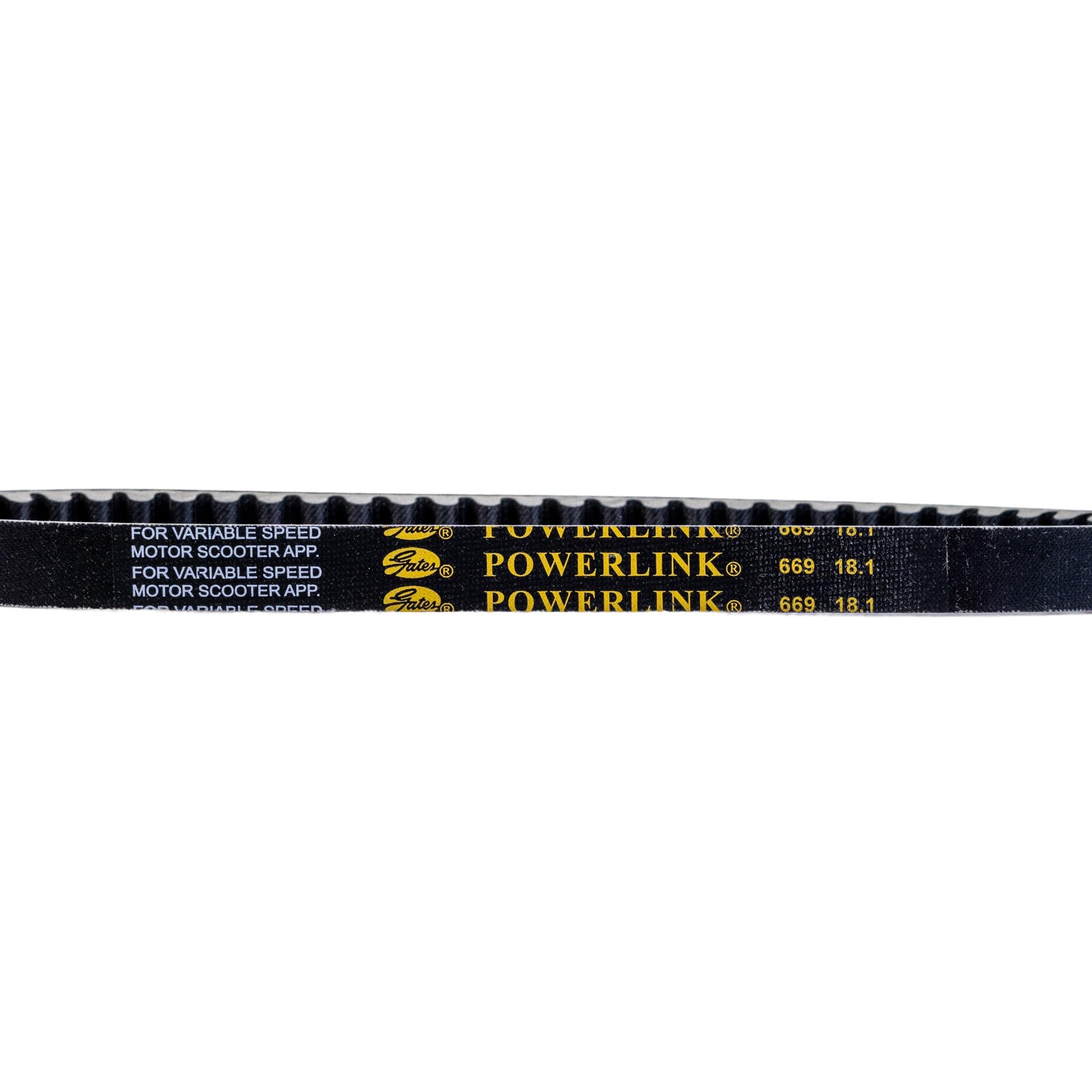 The symmetrical 669-18.1-30 CVT scooter belt for the Honda Aero 50 NH50 & NB50 is a premium quality Gates Powerlink belt that exceeds the durability and longevity of OEM belts provided in Chinese made GY6 139QMB 4-stroke engine gas scooters.