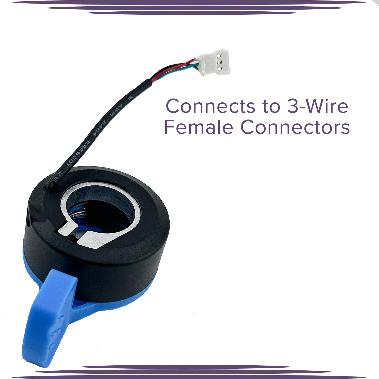 The 3-wire thumb throttle for Hover-1 Comet and Eagle electric scooters is much more convenient than a standard twist-grip throttle, enhancing safety by allowing the rider a firmer grip on the handlebar. We offer the thumb throttle in multiple color options. In addition to the Comet and Eagle, these throttles are also compatible with Hover-1's Aviator scooter.