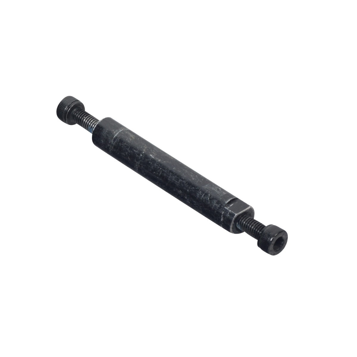 The rear axle for the Hover-1 Rally electric scooter is a 3-part assembly. This is composed of a 59.5 mm long by 9.92 mm diameter threaded female sleeve with a pair of M5-0.80 machine bolts.