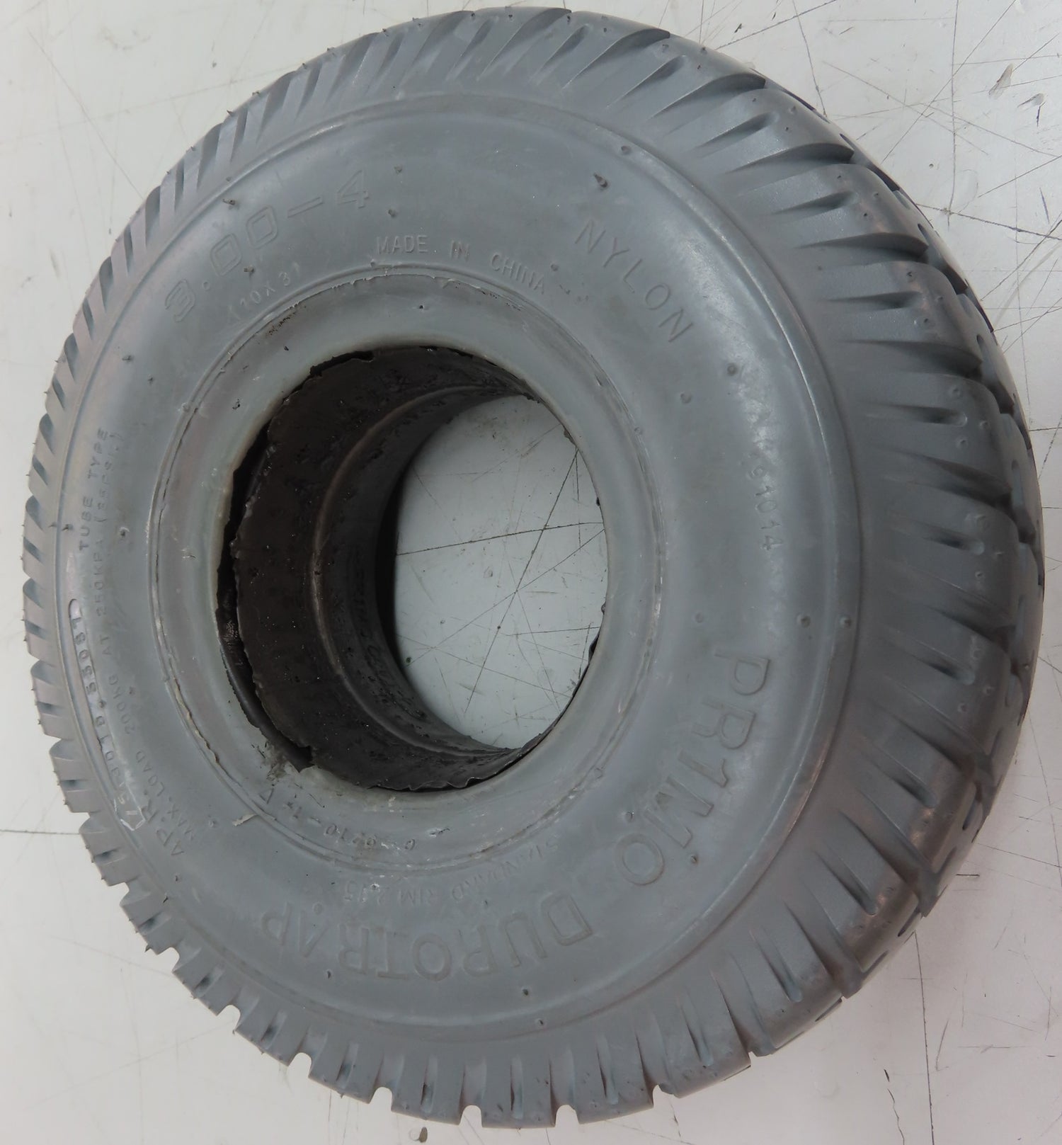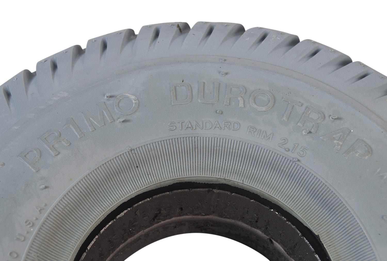 This Primo 3.00-4 (10"x3", 260X85) foam-filled mobility tire features a bead width of approximately 2-5/8" and the Durotrap C9210 tread pattern. No inner tube is required in this flat-free tire, worry-free tire.