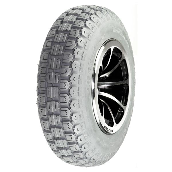 Our flat free drive wheel assembly for Jazzy 1143 and Jazzy 1143 Ultra power chairs comes complete with a black micro mag, 4.10 X 3.50 rim.