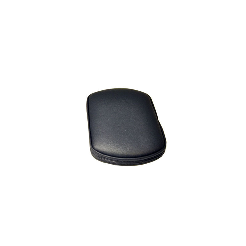 This pediatric sized black vinyl pad measures 6-3/4" in length, 4-3/8" wide, and about 1-5/16" thick. Although made primarily for Quantum rehab models, the pad will retro-fit on most any Jazzy, Jet, or Quantum power chair that uses leg rests with a calf pad bracket. It does not include the metal bracket or mounting screws, so you will have to reuse your existing hardware.