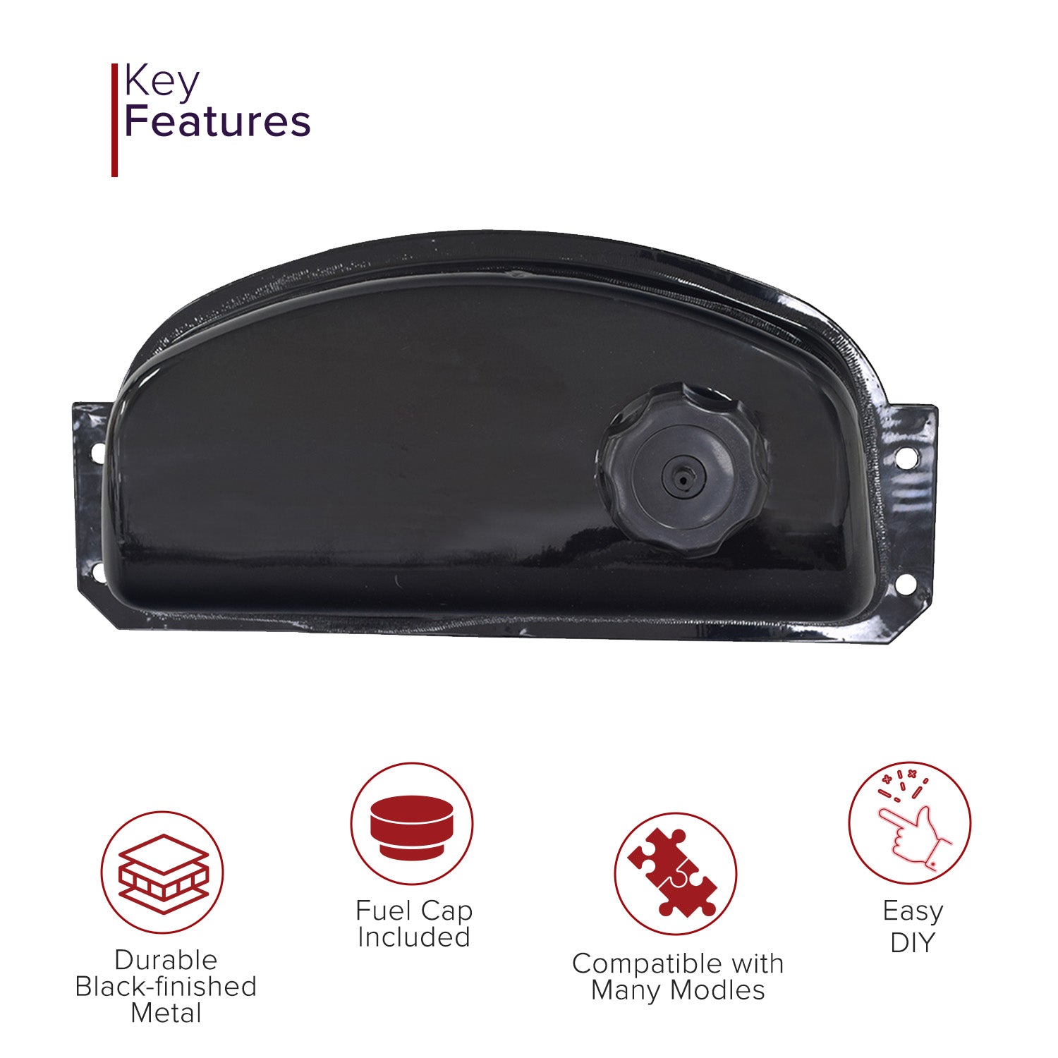 Here is a black-finished metal fuel tank for 110cc go-karts and dune buggies such as models from Coolster, Kandi, and TaoTao. This handy 2.37-liter fuel tank may also be compatible with many other Chinese made gas-powered go-karts, buggies, ATVs and more. It is adaptable to a great variety of uses and is a perfect go-kart gas tank for a DIY engine project.