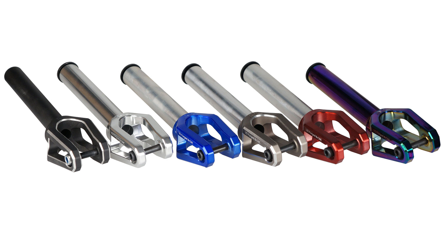 If you love building your own one-of-a-kind custom kick scooter, then you will love putting an AO Diamond V2 fork for HIC/SCS compression. Available in a myriad of color options, these superb forks feature a 31.8 mm forged aluminum stem, strong fork arms, and an M16 steel top screw.