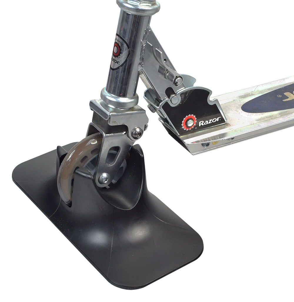 Use our very handy kick scooter stand to keep your scooter upright and out of the way when you are not riding. Most kick scooters lack a kickstand and keeping it upright has meant leaning it on the wall. The solution of course is this little stand designed especially to hold your scooter's front or rear wheel.