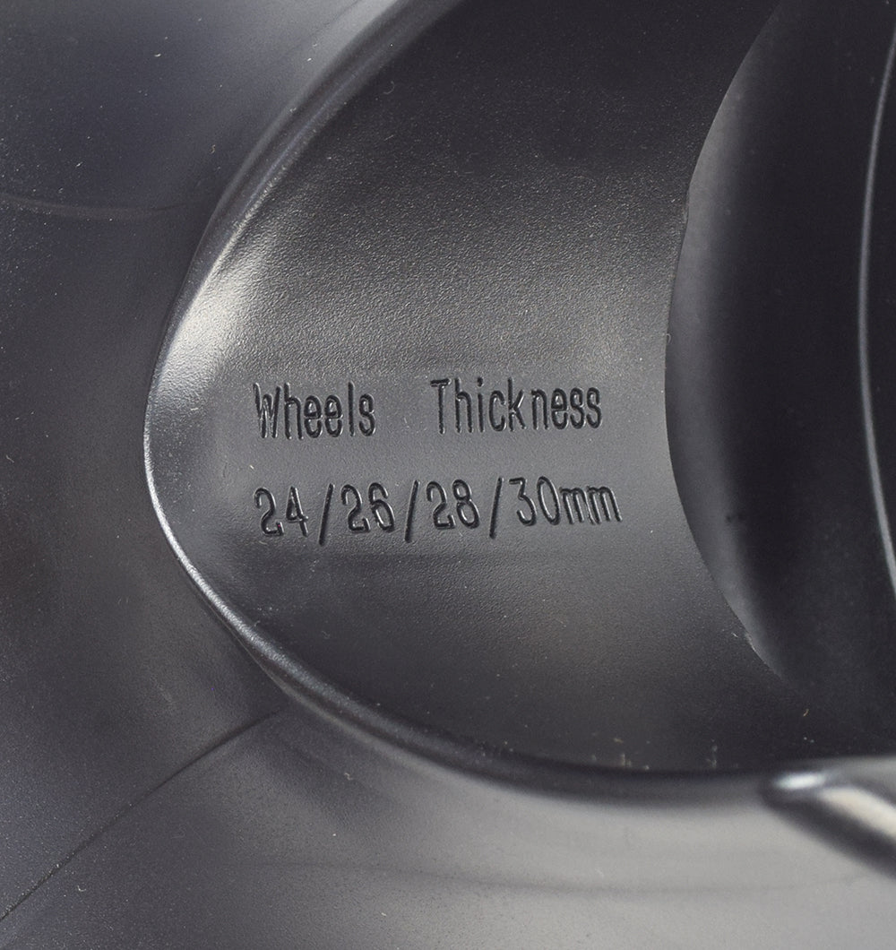 - Holds 24 mm, 26 mm, 28 mm, 30 mm thick wheels