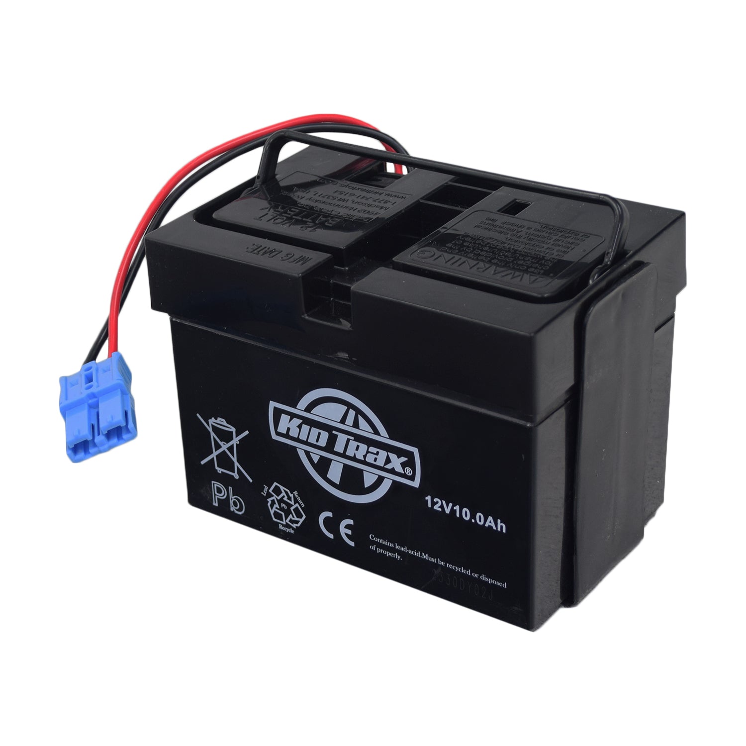 Our 12 volt 10 Ah battery with 2-wire harness and 1" blue grid connector for Kid Trax ride-on toys makes a simple, drop-in & plug-in installation. Kid Trax chose this style battery for its convenience and ease of access. Just unplug the old blue grid connector, pull out the old battery, drop in this new one, plug it in, and watch your kids resume their fun and frolicking.