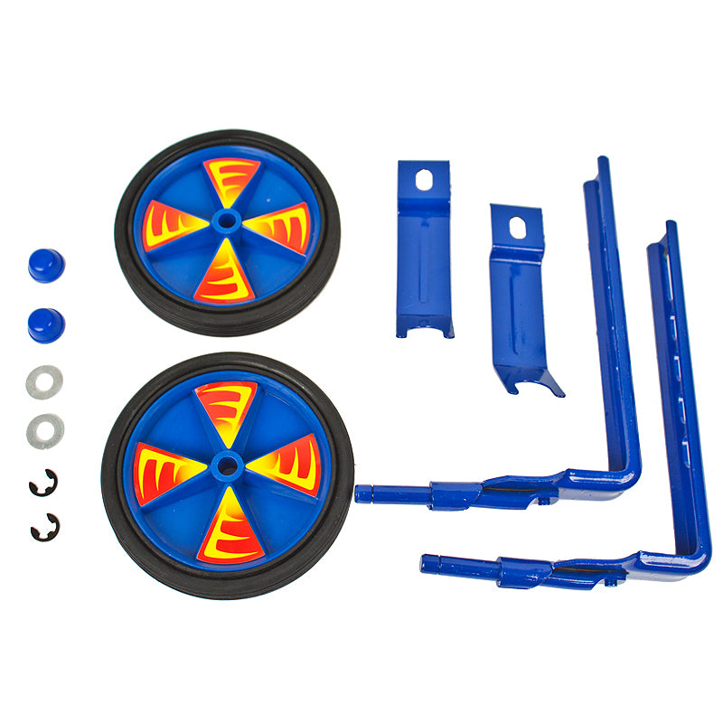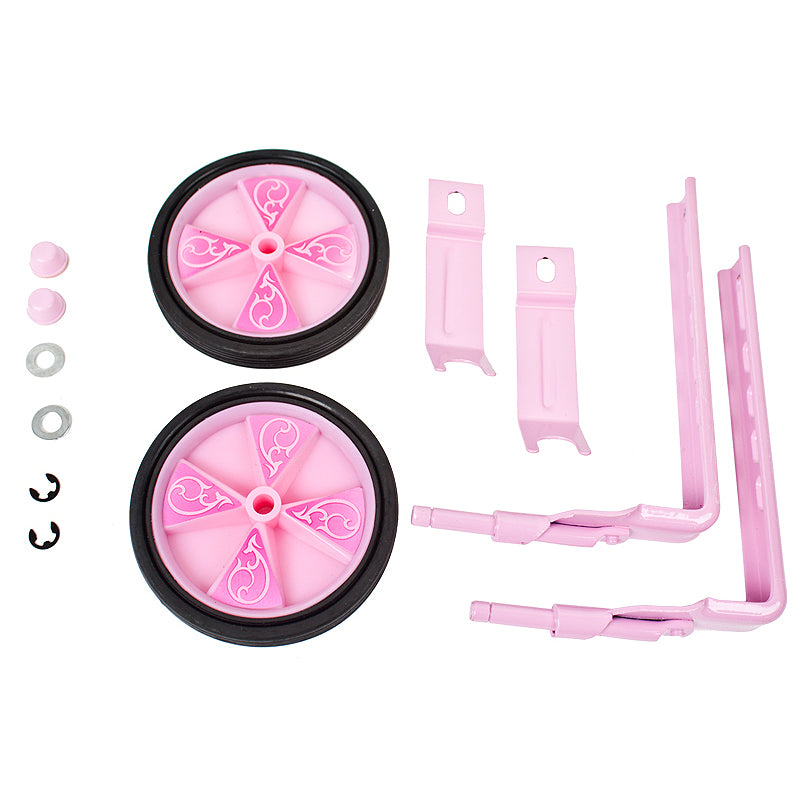 You probably learned to ride your bike with a set of trainer wheels. Now we offer these training wheels for 16" to 20" bicycle wheels from KidZamo so that you can train another generation of cyclists. Training wheels lets young beginning riders gain balance and confidence, and these colorful little training wheel sets do so in style. You can select your trainers from either the Blue Flames style or the Pink Flowers.
