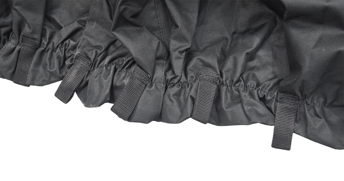 Note: If you use this cover to haul your mini bike in the back bed of an open truck, then you will need to lash it down securely. A couple of bungee cords will usually do the trick. The bottom edge has loops with a draw cord and buckle for this. What you do not want is for the cover to go flapping and flopping around in the wind as this will cause a lot of unnecessary wear & tear on the fabric.