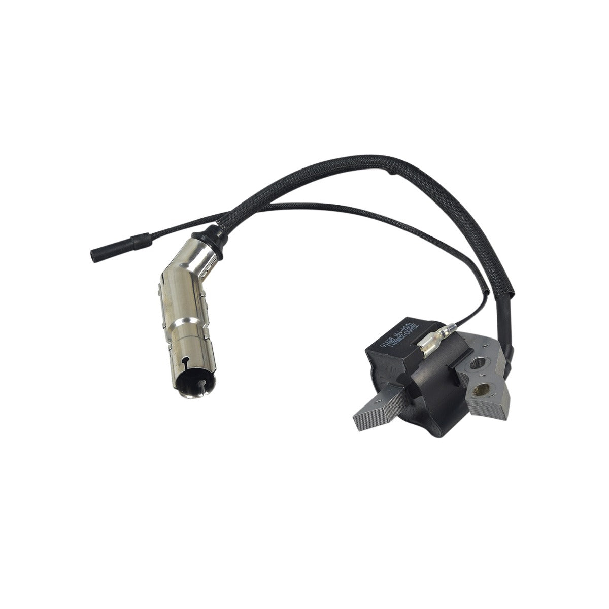 The cable with the spark plug connector measures approximately 12-3/4" long, with an additional detachable 13" black wire. Please carefully compare your original ignition coil to the one pictured and described to determine a compatible fit.