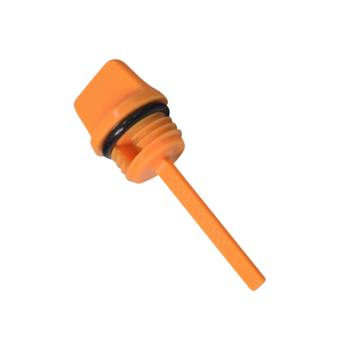 This orange plastic oil dipstick features an O-ring for a tight seal as well as the high and low marks gauged for the model's 79cc engine.