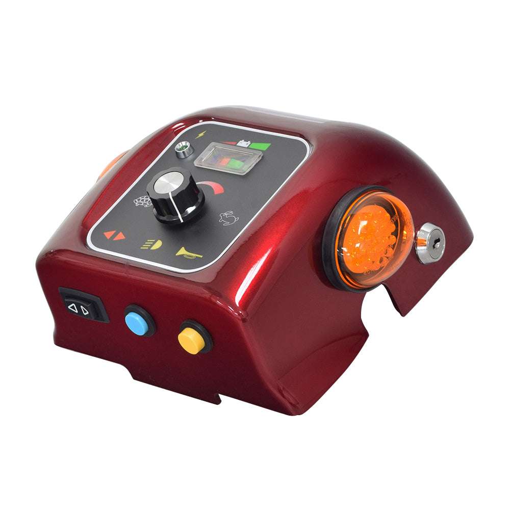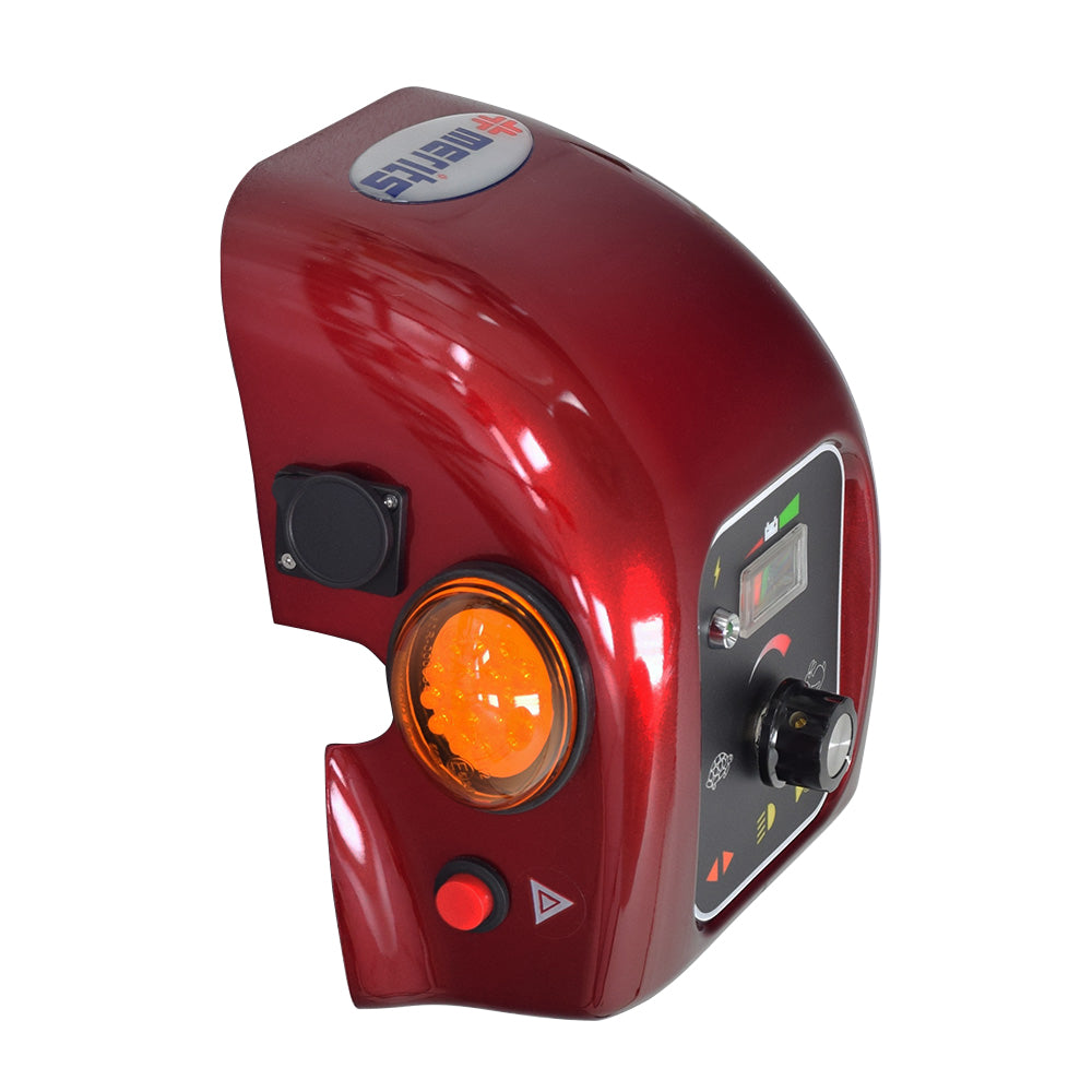 The replacement console with front-to-rear wiring harness for the Merits Pioneer 3 (S131) mobility scooter comes to us direct from Merits, so you know it is the right replacement unit for your S131. Merits make these console units in several color options including blue and red to match the finish on your Pioneer 3 scooter.
