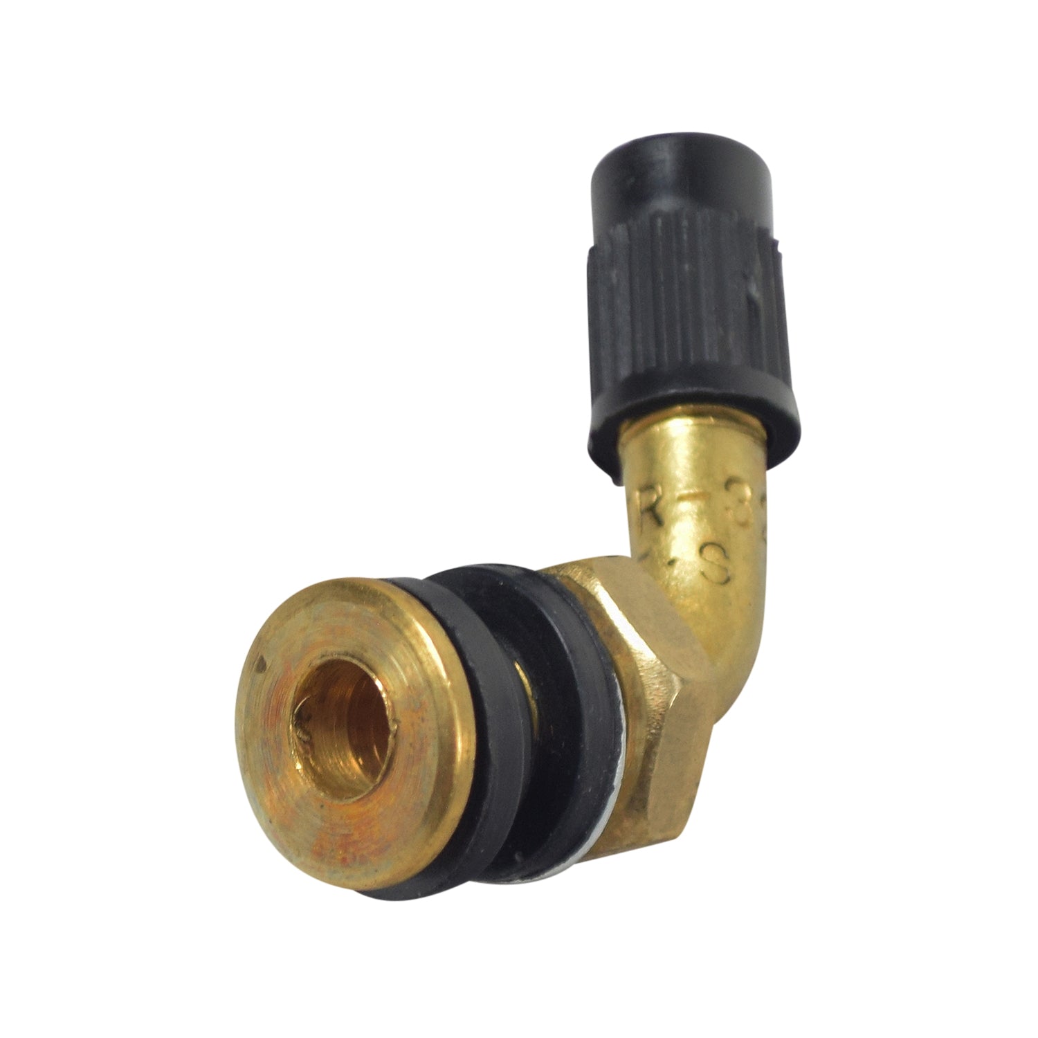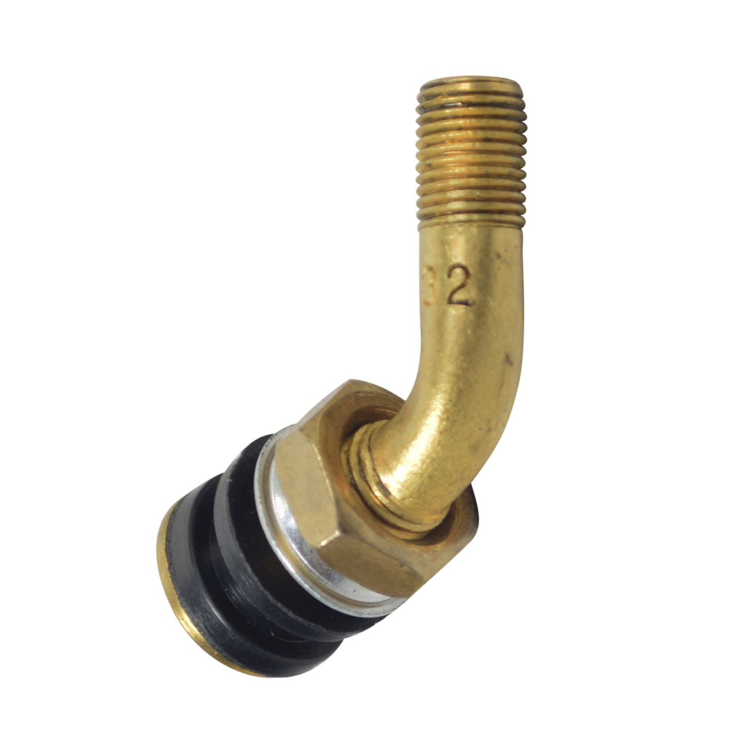 Bent Valve Stem for Tubeless Tires with Removable Locking Nut and Seals