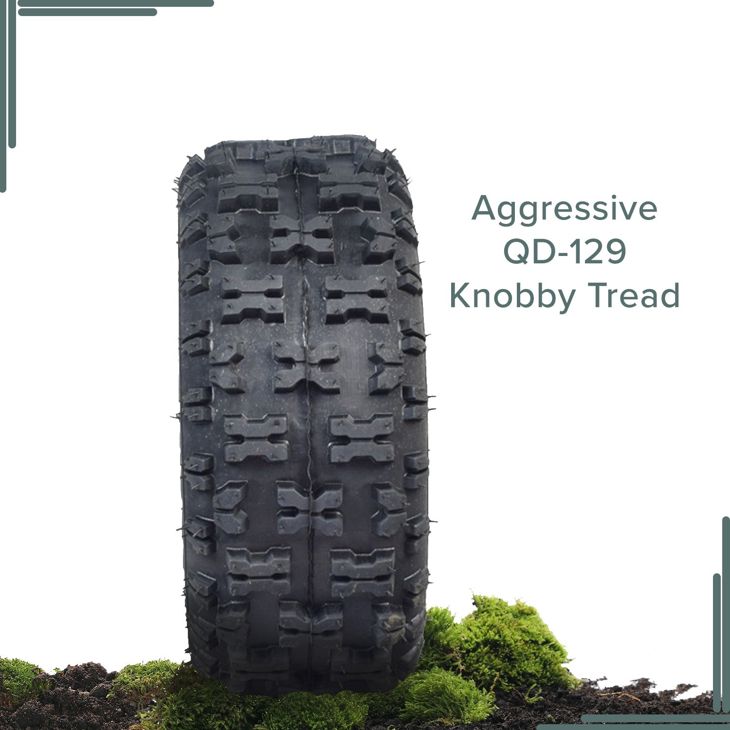 The 13x5.00-6 dirt bike and mini bike tire with Q129 tread from Qind is a great piece of rubber for a number of small recreational offroad models. This tire makes a great upgrade to your machine with a more aggressive tread pattern to provide superior grip on loose surfaces.