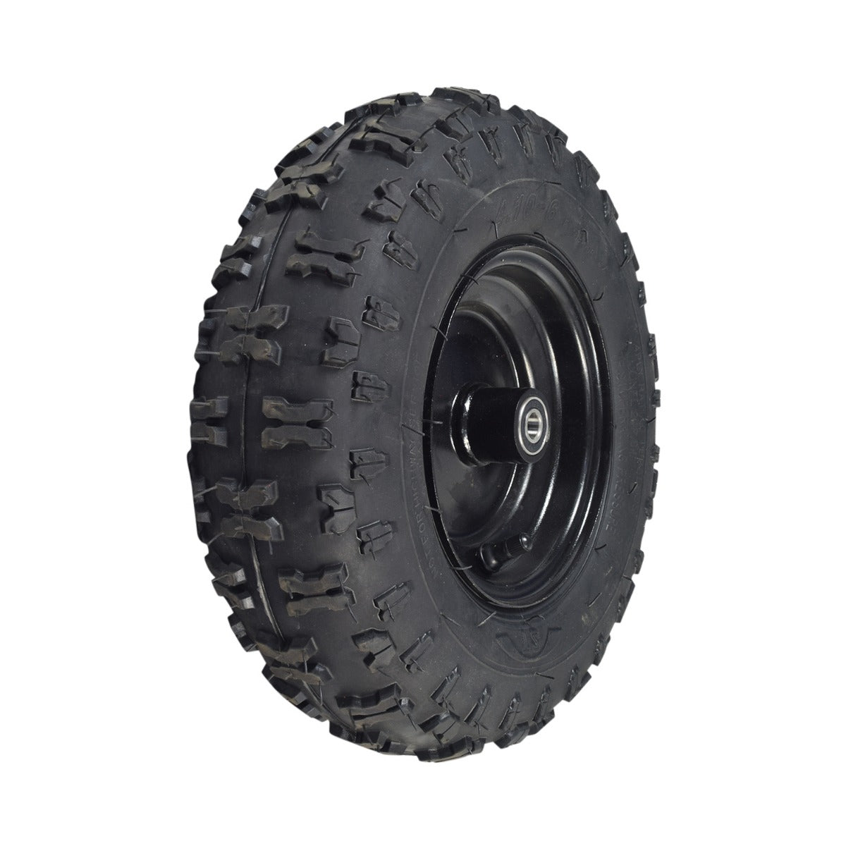 Our rear wheel assembly for the Fit Right DB003 40cc 4-stroke mini bike sports a serious mud-slinging knobby tread that was designed to maximize control even on rough, loose, or sloppy surfaces.