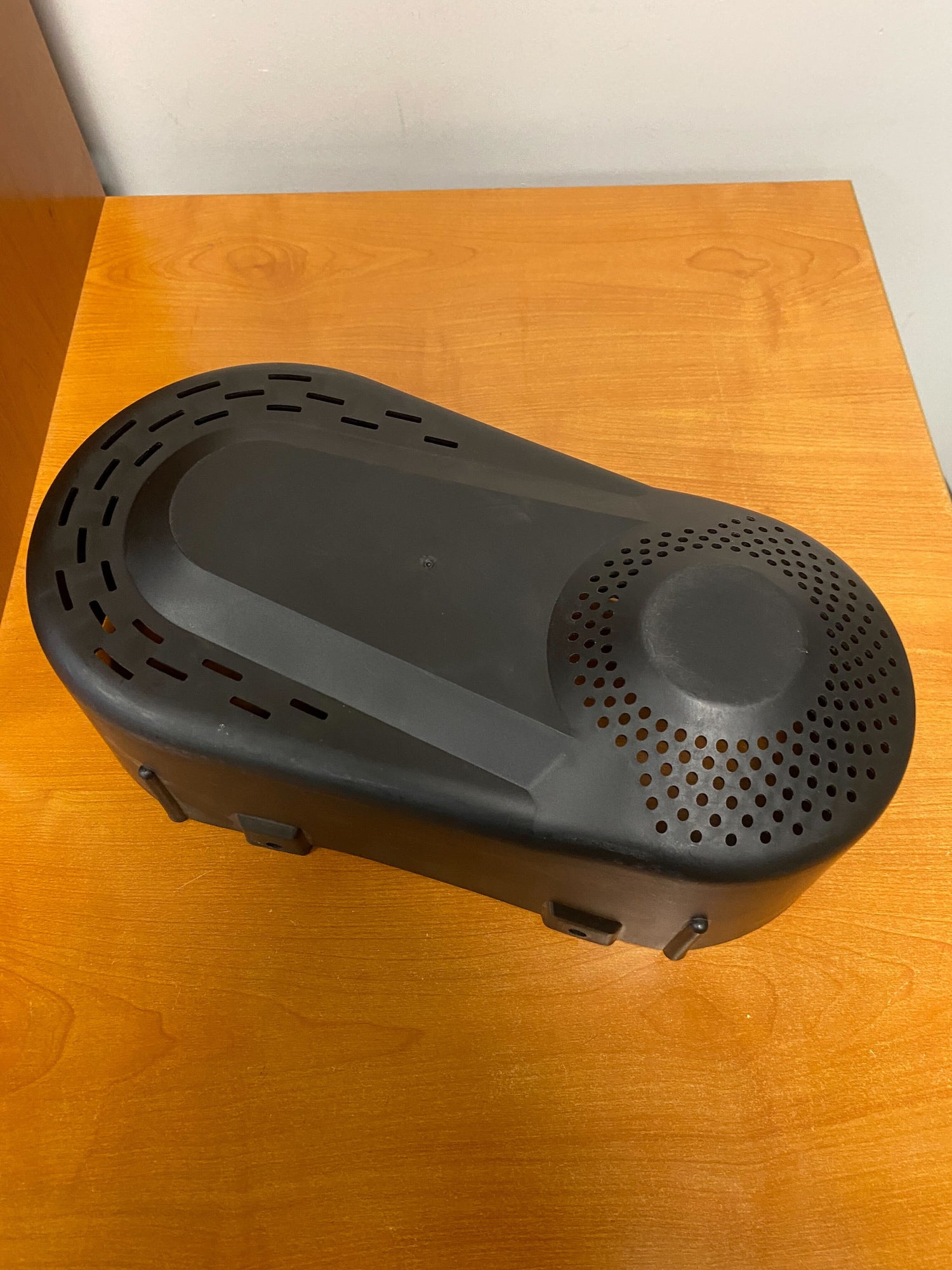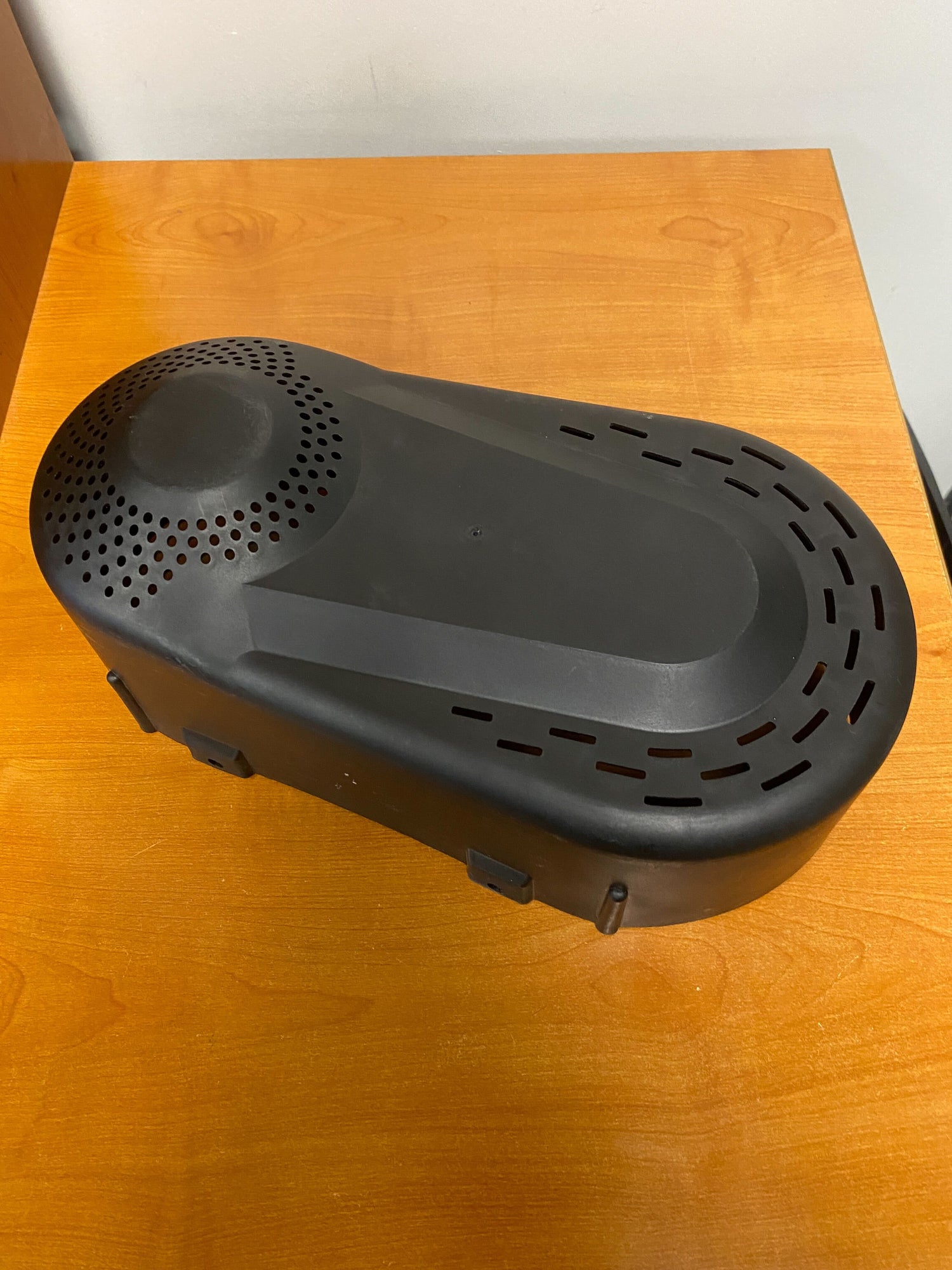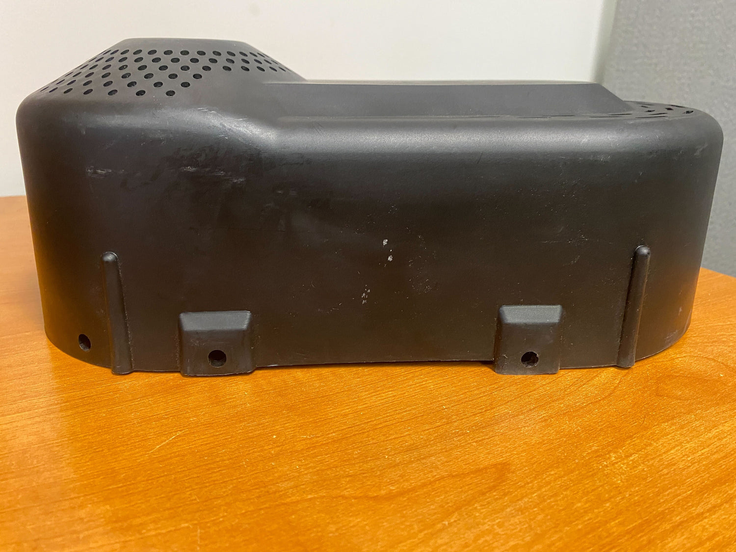This is a torque converter clutch cover widely found on go-karts and mini bikes. Made of black plastic, it provides a vital function of protecting your go kart torque converter, but can easily be cracked or ripped off while off-roading.