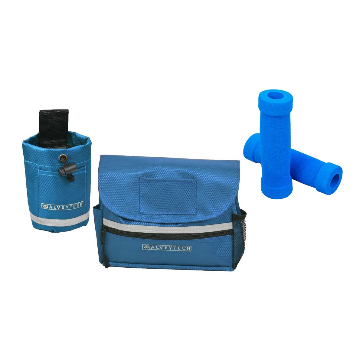 We make accessorizing your mobility scooter, power chair, or wheelchair easy with this great combination set from AlveyTech. It seems that everyone these days needs to carry more and more stuff as they go about their day and our saddle bag and cup holder combination gives you two excellent fabric satchels, one for your drink and another for your books, papers, and any other must-have take-along items. But we make it even better by including a new set of two handlebar grips