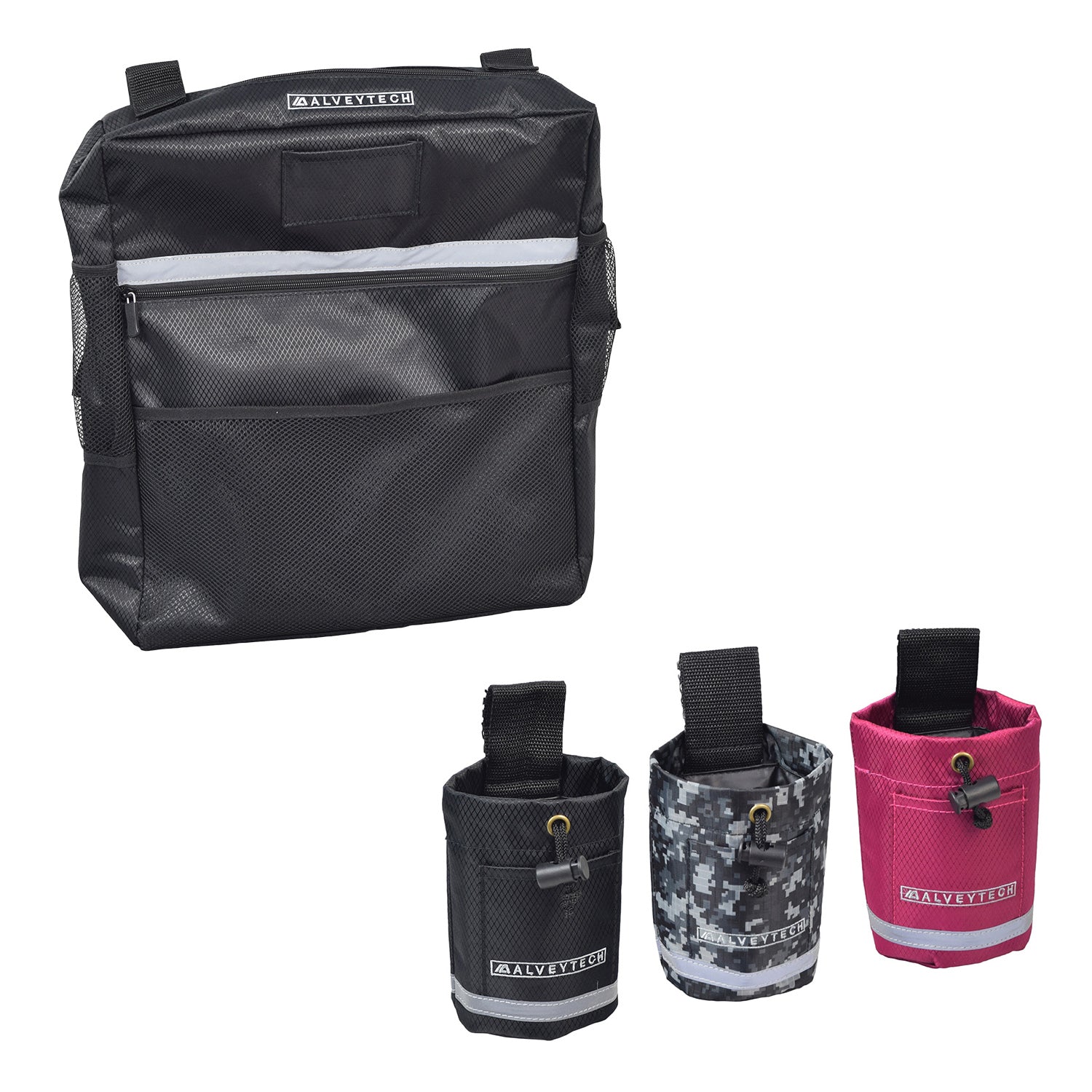- Universal compatibility - AlveyTech bags & cup holders quickly & securely mount on any scooter, power chair, or wheelchair with easy to use nylon straps & pinch buckles. If your mobility device has a seat back, then our bag & cup holder combination