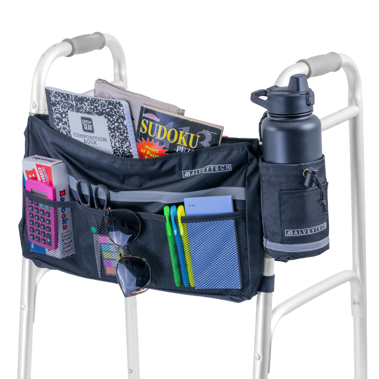 We are always looking to provide our customers with innovative and useful items, and our deluxe walker/rollator bag and cup holder combination from AlveyTech puts convenience right at your fingertips. Using a walker or rollator can be a whole lot more convenient when you can easily transport your small everyday items along with you. Because the AlveyTech bag for walkers and rollators does such a superlative job for which it was designed, we combined it with our universal mount cupholder for an all-in-one set that is an exceptional value.