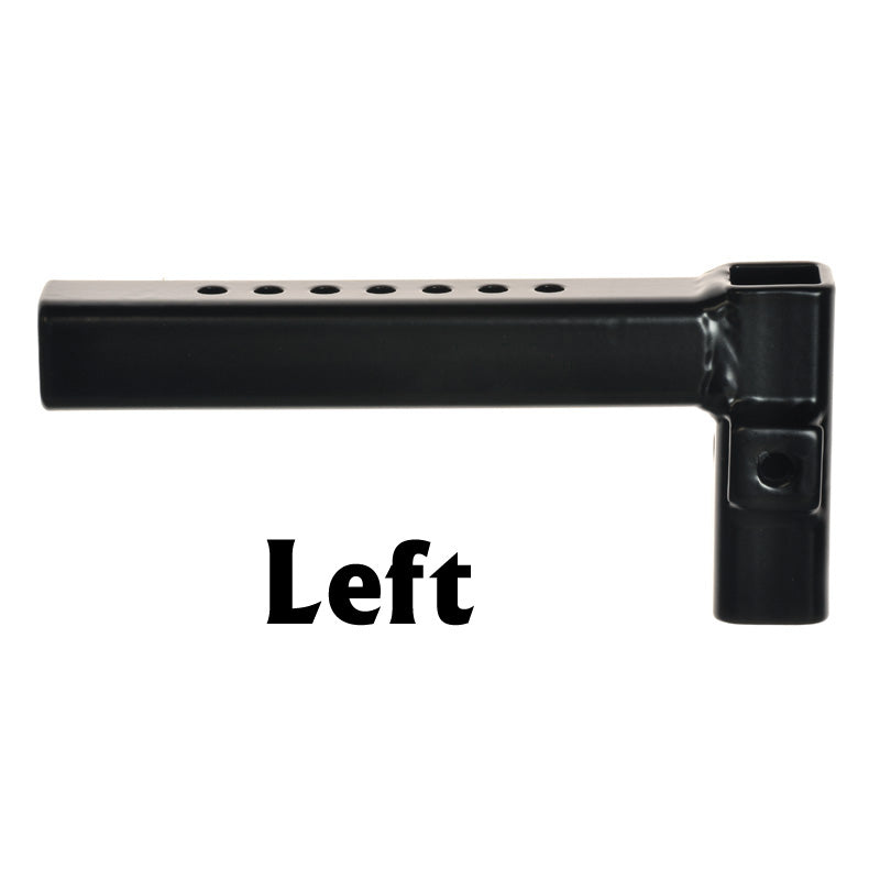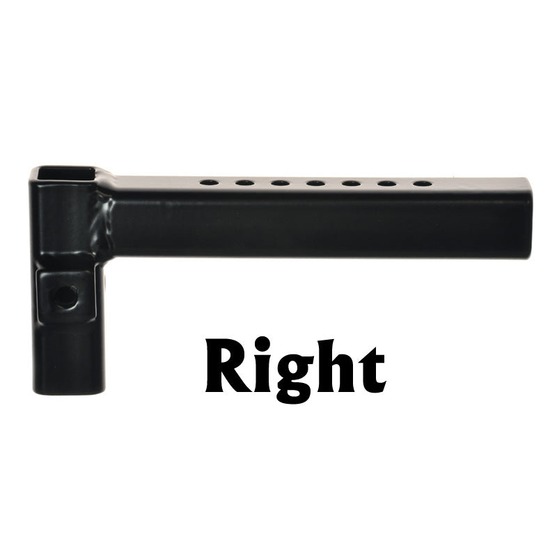 The elevating leg rest receiver for the Jazzy, Jet, and Quantum Clover Leaf seat frame is available for either the left side or the right side. This is the 7-position, width adjustable leg rest receiver.