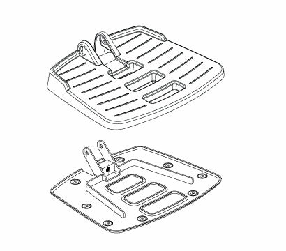 Footrest platform assembly for the Jazzy Select Elite and Pride TSS 300 power chair by Pride Mobility. This assembly includes both the top and base portions of the footrest platform, as well as assembly hardware.