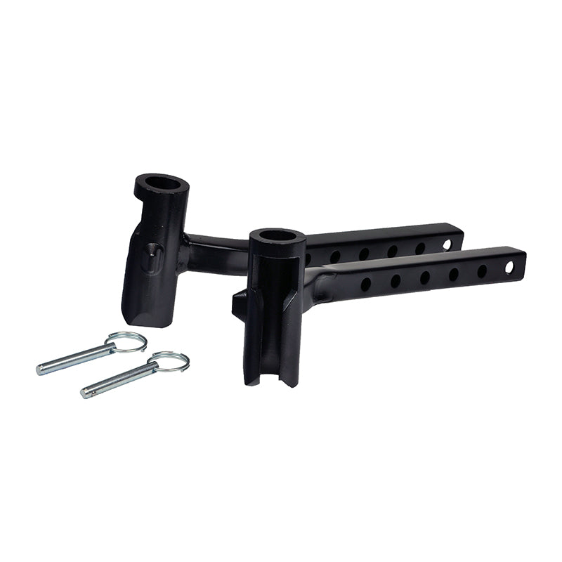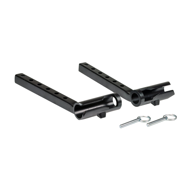 This is a set of two Universal Leg Rest Hanger Assembly for Jazzy Power Chairs with Clover Leaf Seating and Elevating Leg Rests. You get the both the left and the right side hangers, and their detent cotter pins.