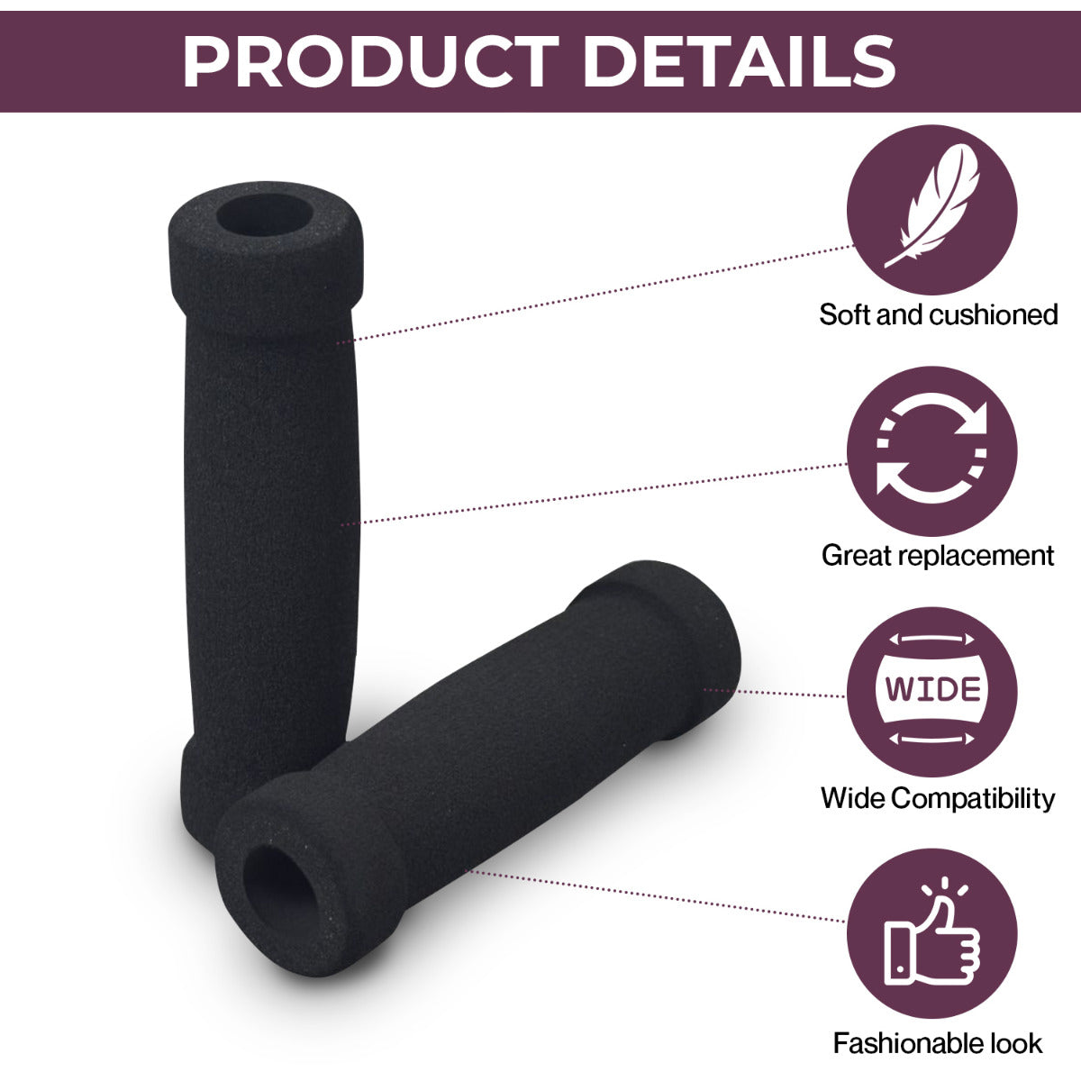 - Set of two foam handlebar grips