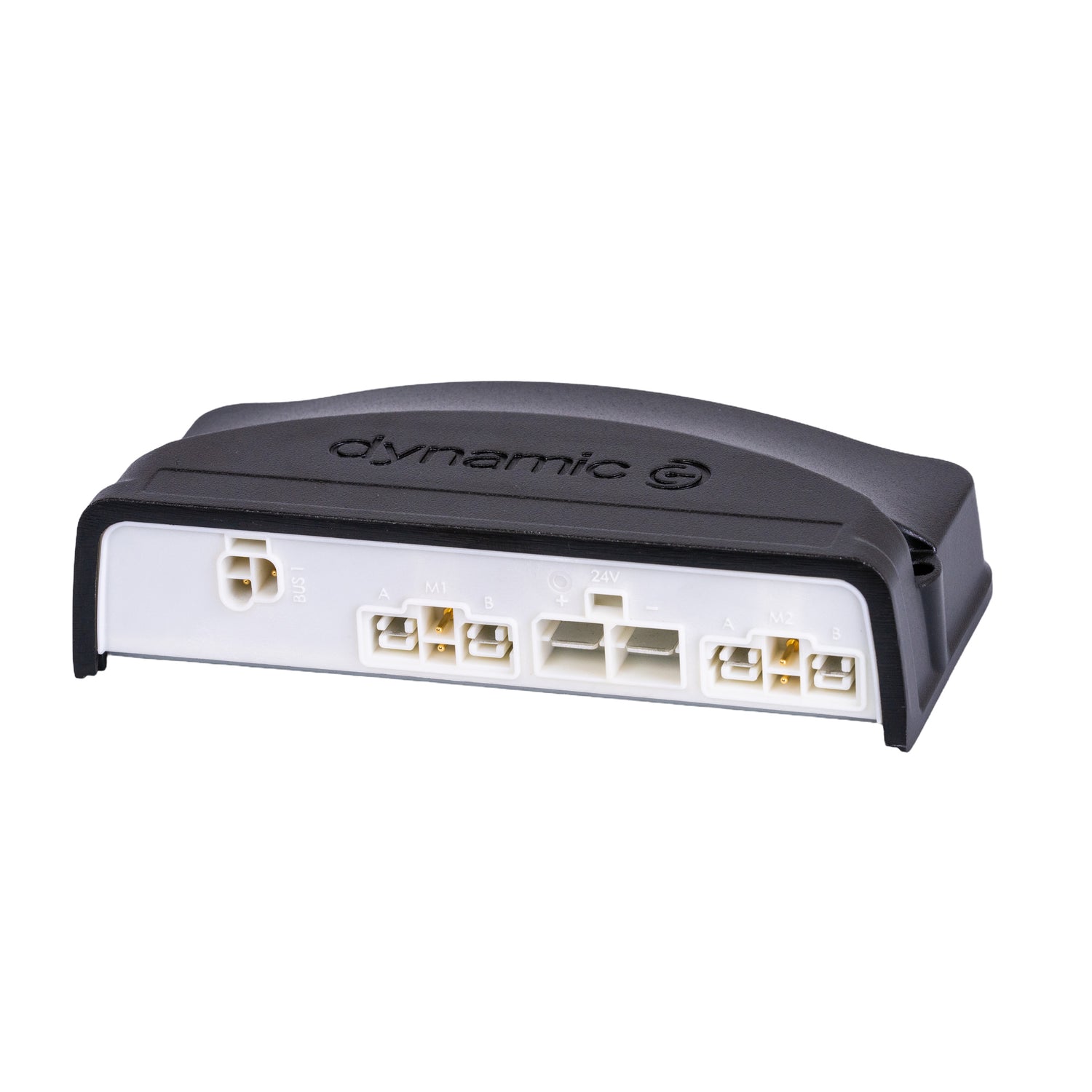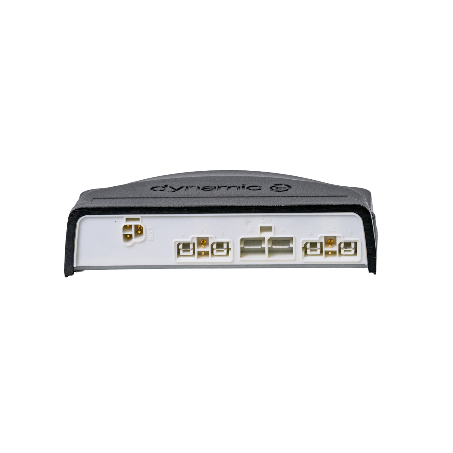 The 50 amp Dynamic LiNX controller for the Jazzy 600 ES power chair requires the use of the Dynamic LiNX joystick control. The controller features four connection ports designed for: Joystick bus cable, left and right motor cables, and power cable.