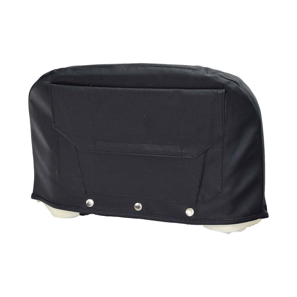 Our seat cover assembly for the Jazzy Zero Turn (ZT) scooter has both the upper seat back and the lower seat base cover. Made of easy to clean black vinyl, and festooned with the Jazzy logo, this replacement set of seat upholstery is easily attached to the standard 17" seat assembly on the Zero Turn. There is even a handy document pouch on the back.
