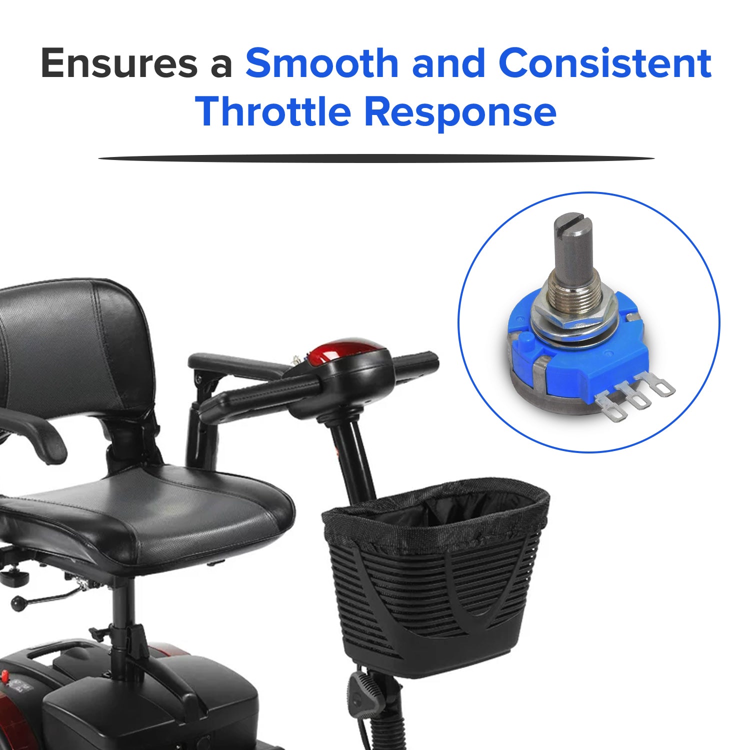 This 5K Ohm TOCOS potentiometer is used on several mobility scooter models.
