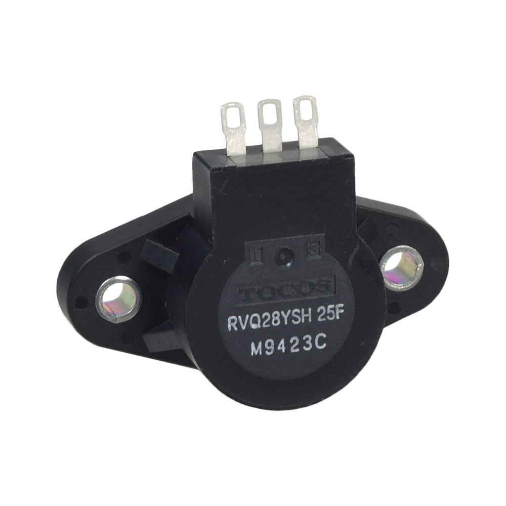 This is the 5K Ohm RVQ28YSH 25F S502 throttle potentiometer from TOCOS. This potentiometer (or "throttle pot") is used especially by Golden Technologies for their Companion series of mobility scooters.