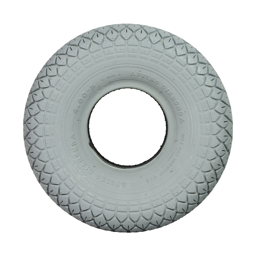 4.00-5 pneumatic tire with C154G Diamond Knobby tread from Primo fits many mobility scooters and power chairs. This tire is also known by the English and metric sizes of 13"x4" and 330x100.