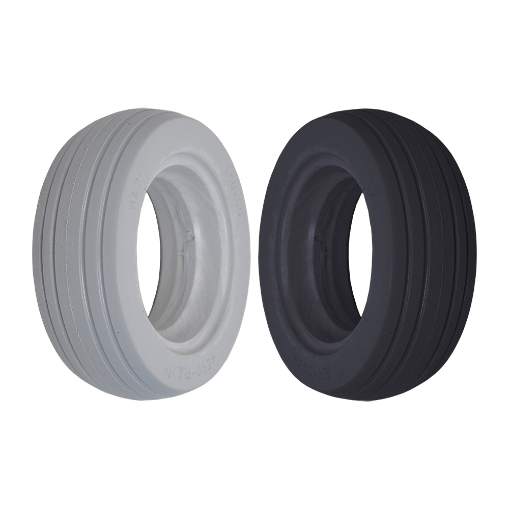 Our 6"x2" (150x50) solid urethane 4-rib mobility tire offers flat-free dependability, With four ribs for traction, this 6"x2" Aero-Flex tire is used as a front tire on many user-propelled wheelchairs, as well as both front and rear tires on many companion or assisted wheelchairs.
