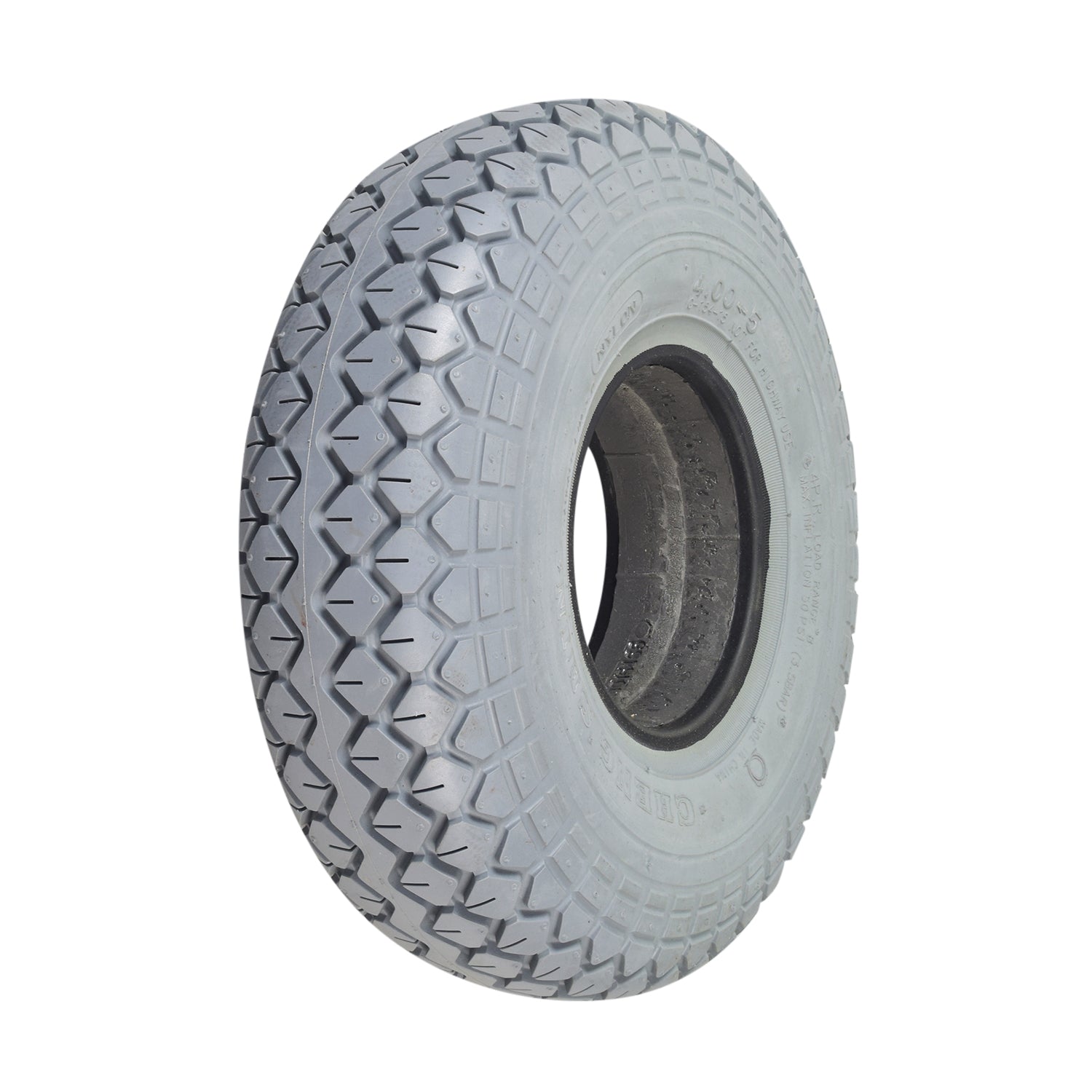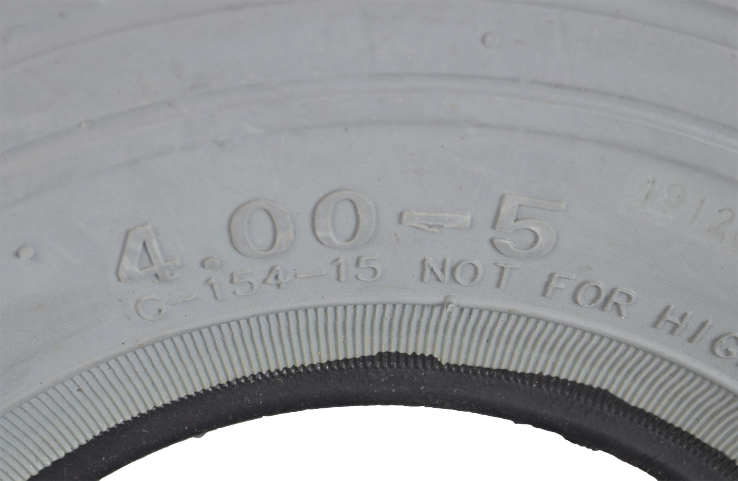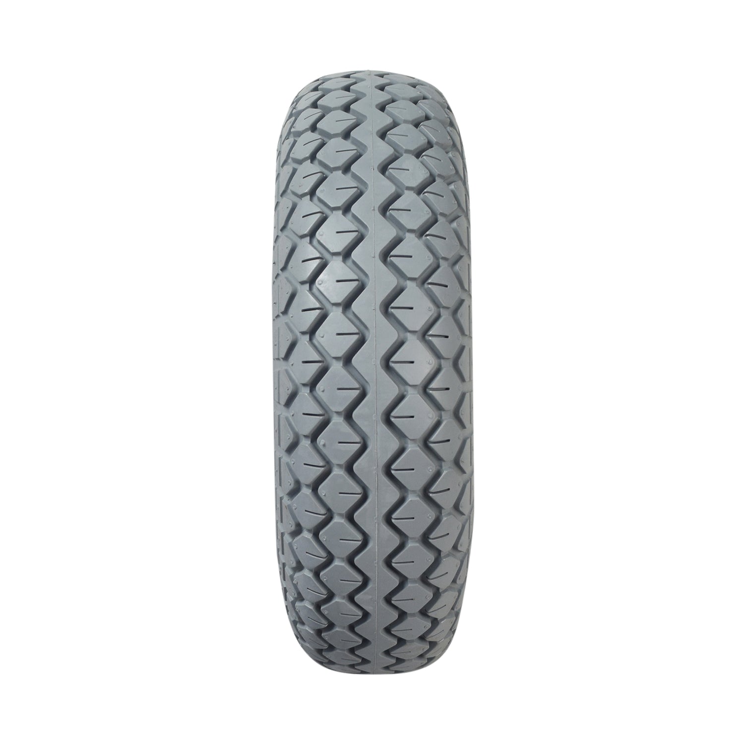 Also known as a 13"x4" or 330x100, 4.00-5 foam-filled solid flat-free tire with C154 Diamond tread pattern fits many mobility scooters and power chairs. This non-marking gray rubber beauty may be used as a replacement for your original equipment solid tire or replace your old pneumatic tire. Pneumatic air-filled tires can typically be replaced with foam-filled flat-free tires of the same size very easily.