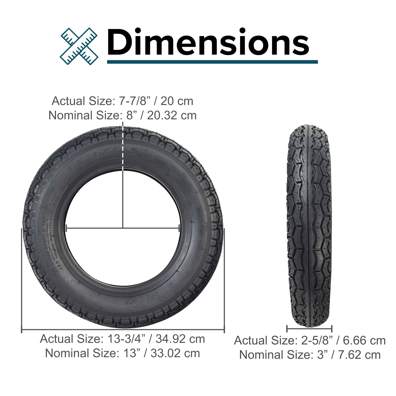 Tire size: 14"x3" (3.00-8)