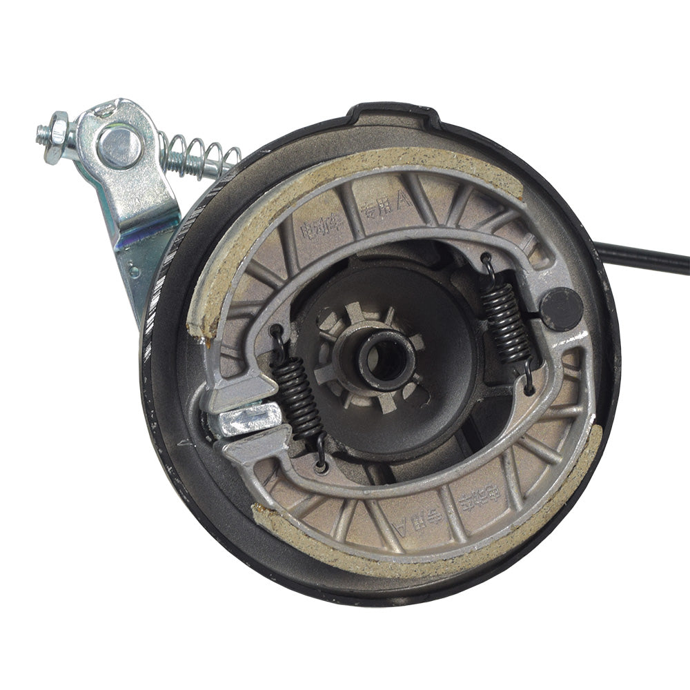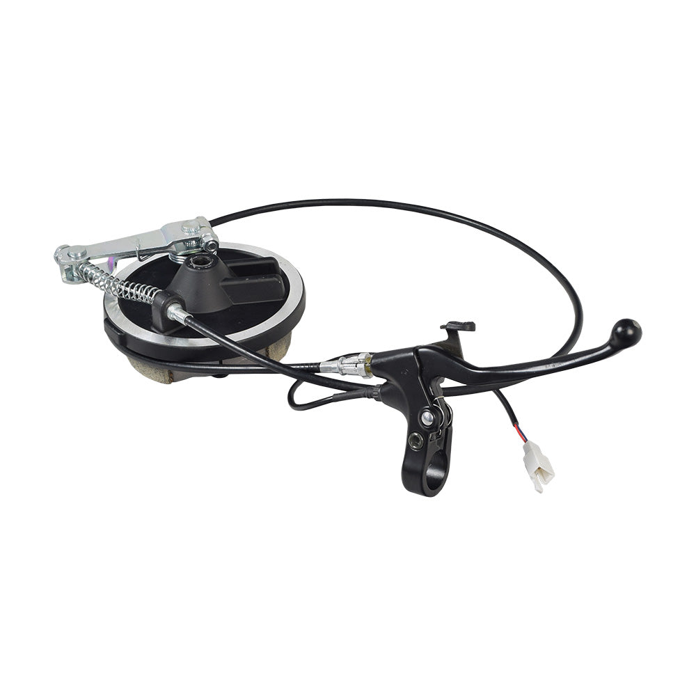 - All in one assembly; front drum brake with cable, lever, & drum brake shoes