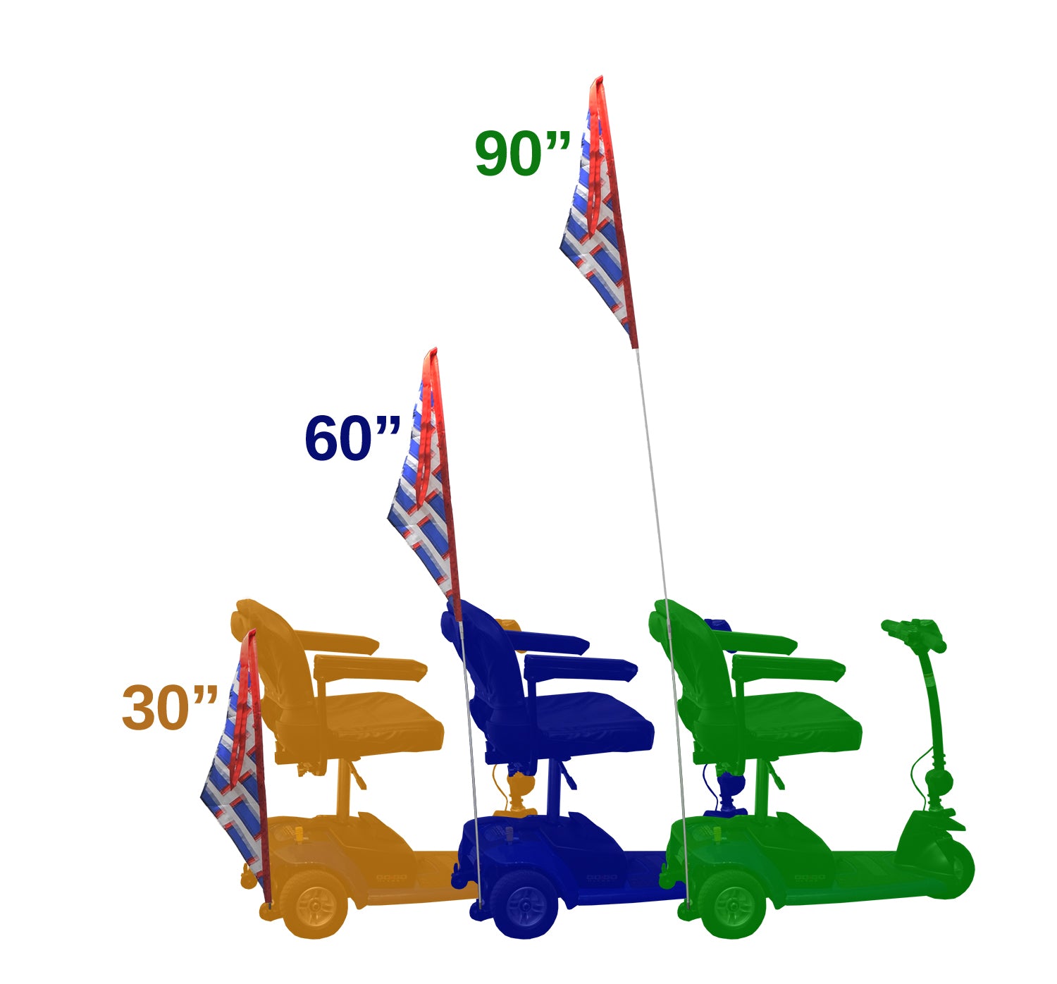 These Sail Flags will get you noticed, and we offer these high-quality Mobility Scooter & Power Chair accessories in your choice of splendiferous color options. Get ready to set sail without leaving dry land.