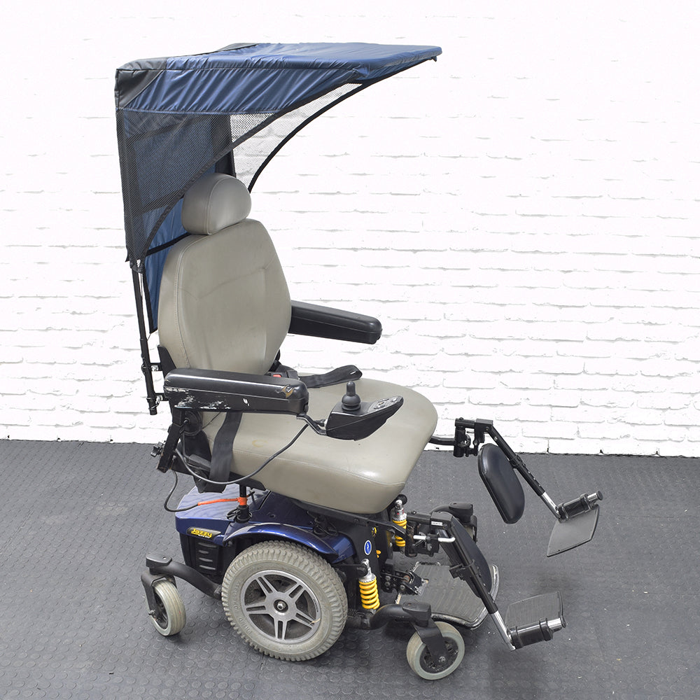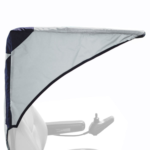 The Weatherbreaker canopy for scooters and power chairs offers versatile protection from sun and rain. Designed to fit a wide range of models, this universal canopy combines durability with style and is available in blue, gray, or red.