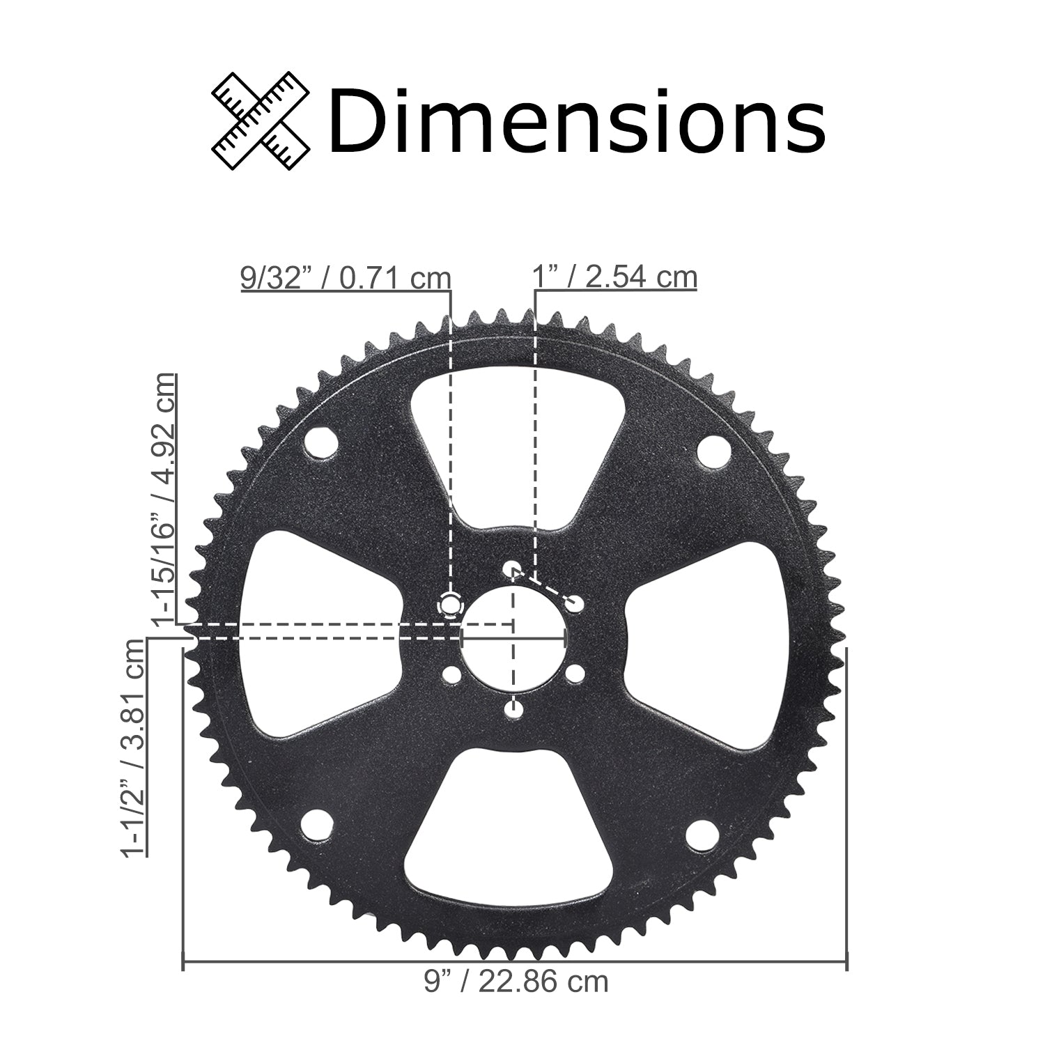 This is the large rear sprocket compatible with several brands of mass produced mini bikes, including models from Coleman, Monster Moto / Mega Moto, Motovox, and TaoTao. This chain sprocket has 75 teeth and sized for #35 chain. Six inner mounting holes for easy installation.