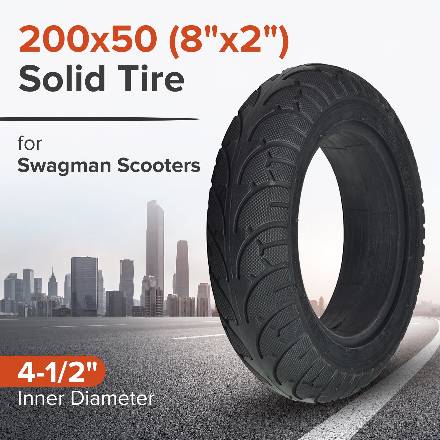 200x50 (8"x2") Solid Tire with 4.5" Inner Diameter for Self-Balancing Scooters