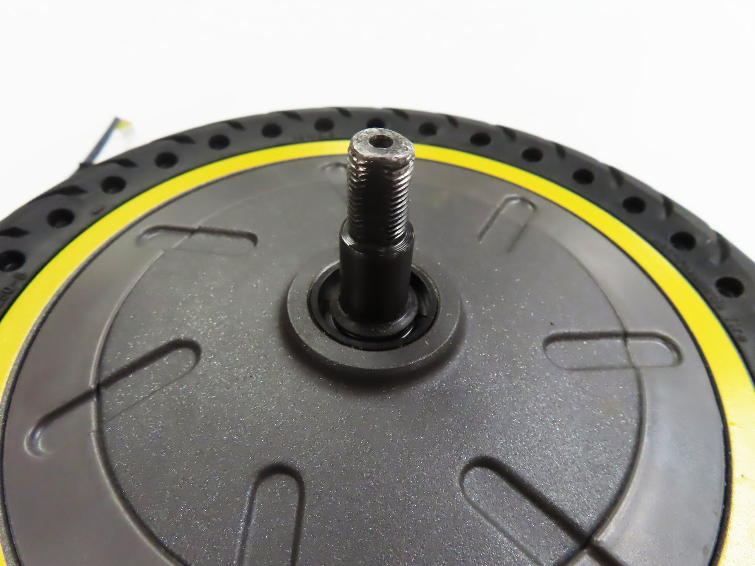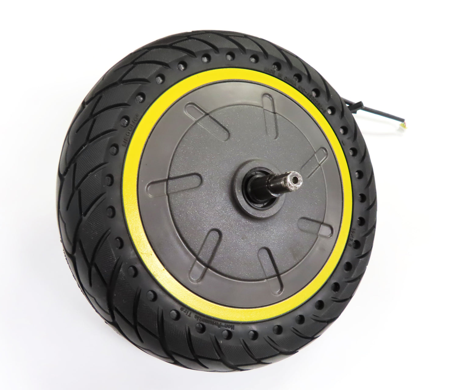 The hub motor and rear wheel assembly for the Ninebot MAX G30 scooter is a 36 volt, 350 watt motor encircled with the 10" rim and features a 10" (60/70-6.5) flat-free solid tire.
