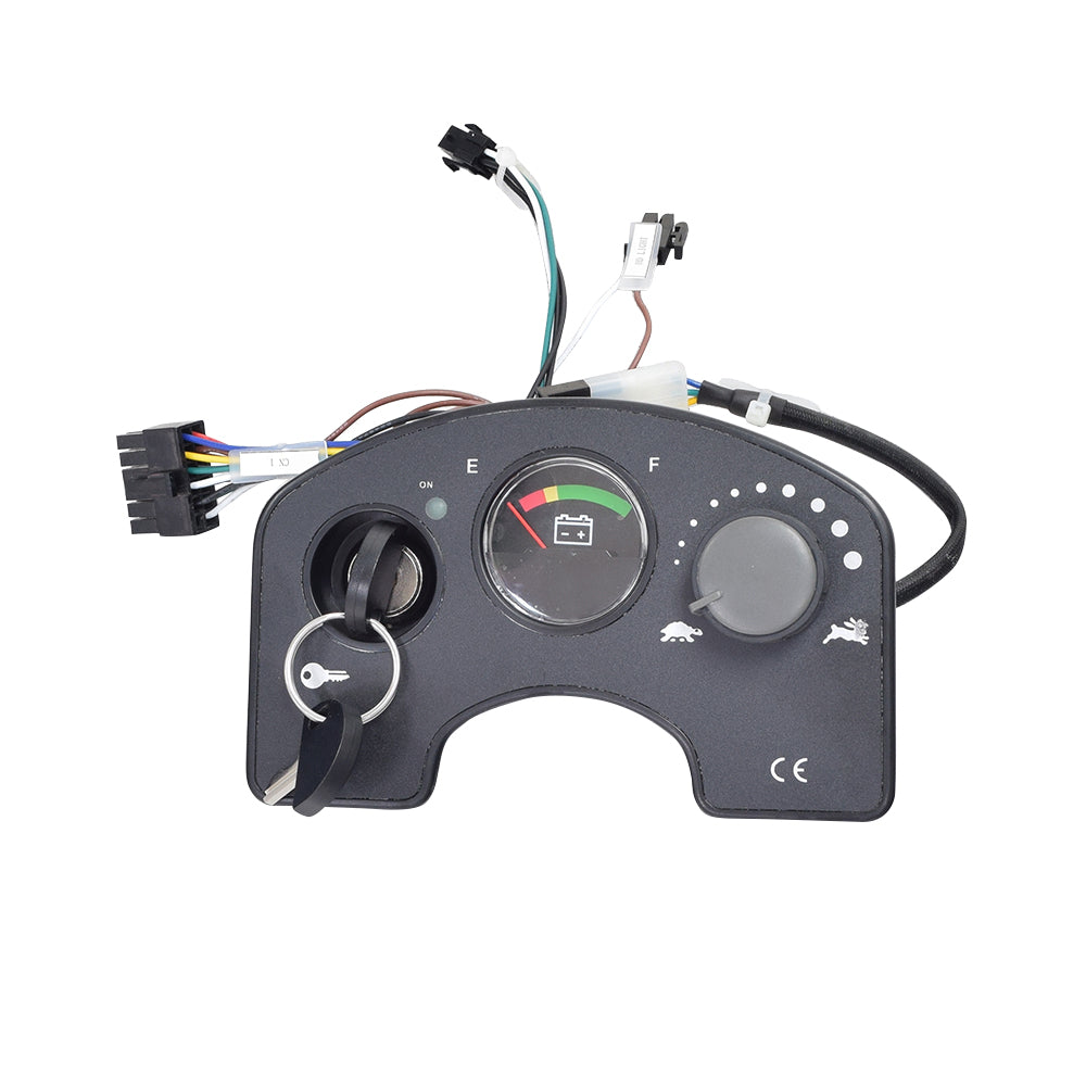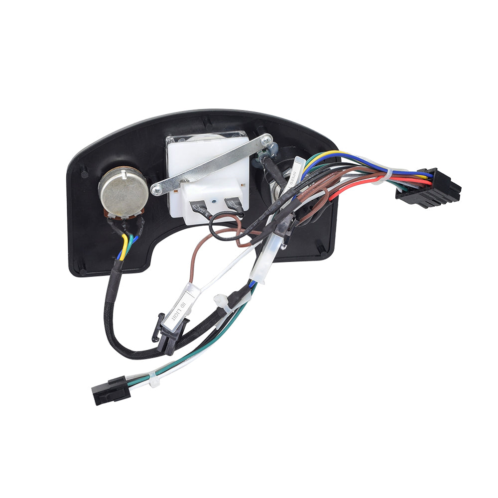 This electronic console assembly for the Pride Maxima (SC900/SC940) mobility scooters will replace the old cracked, broken, scratched or damaged unit that came with your scooter when it was new. This assembly includes the black upper shroud, the speed pot and harness, the speed control knob, key switch, a set of two keys, and an LED battery meter.