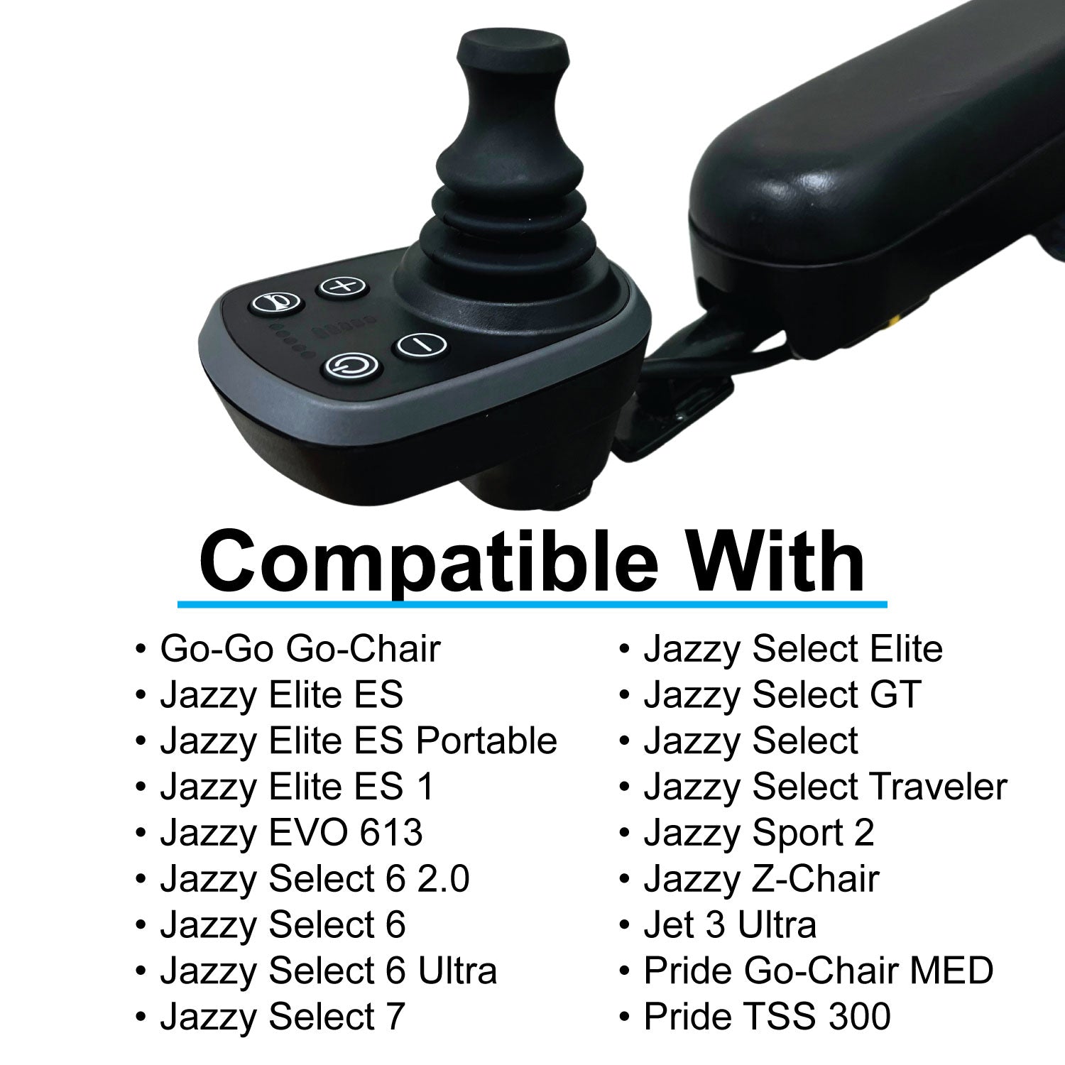 2 Key GC2/GC3 joystick remote with speed dial designed for use with Jazzy and Jet power chairs from Pride Mobility. Please refer to the Compatibility tab for a complete list of compatible models, as joystick remote connectors may vary between different production runs.