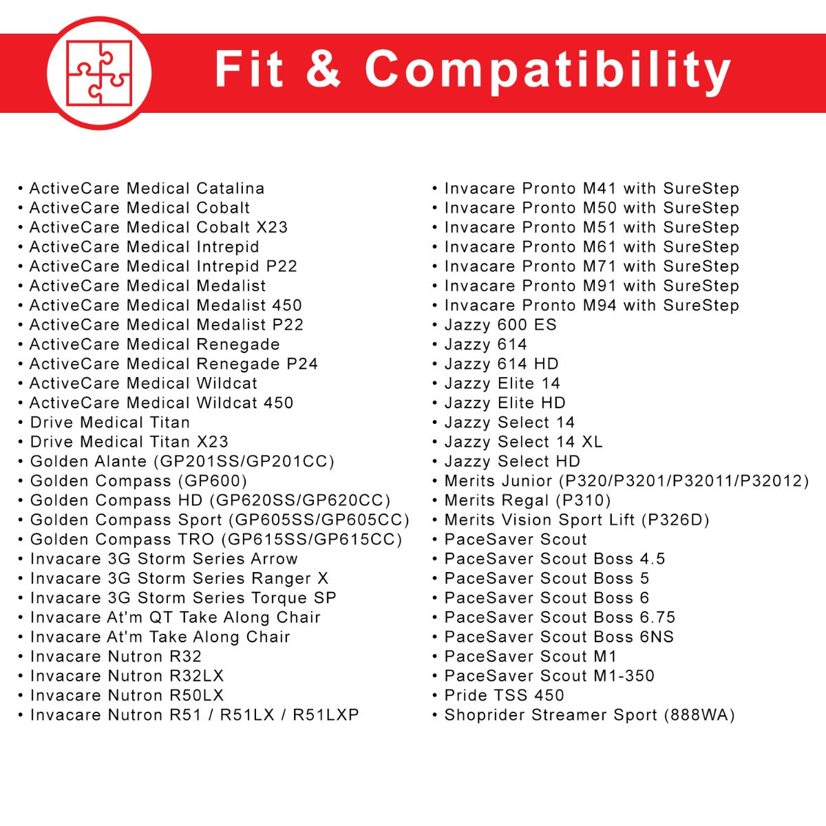 Compatible models include the Dynamic Shark, SPJ+, A-Series, and other Dynamic joystick remotes used on many brands of power chairs including Invacare, Golden Technologies, ActiveCare, Jazzy, Pacesaver, Shoprider, more.