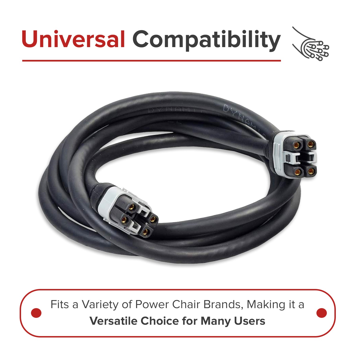 Joystick bus cable for Dynamic Shark joysticks commonly used on power chairs made by Jazzy, Pride, Golden Technologies, Drive, Activecare, Shoprider, Merits, and other manufacturers.