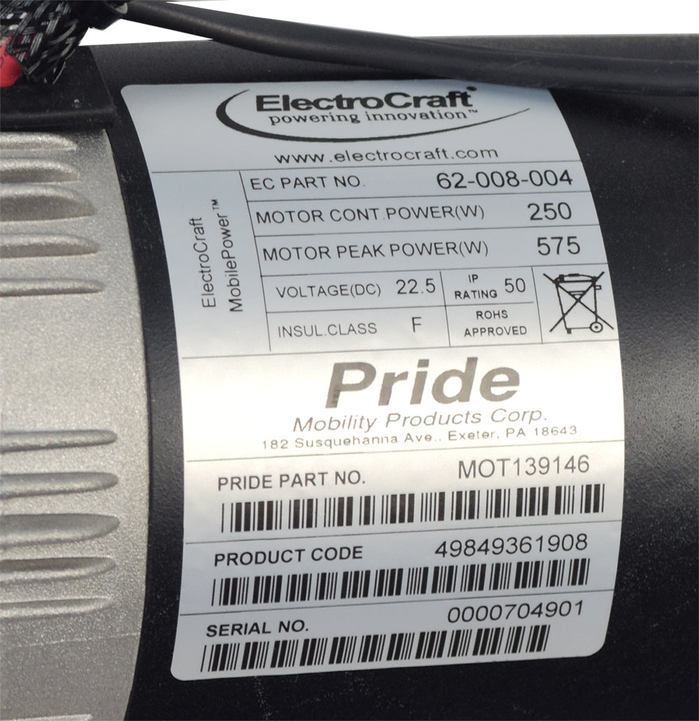 Note: This motor is serial number specific. It is only compatible with the VA model J6 power chair bearing a serial number JB213314162020 and after.