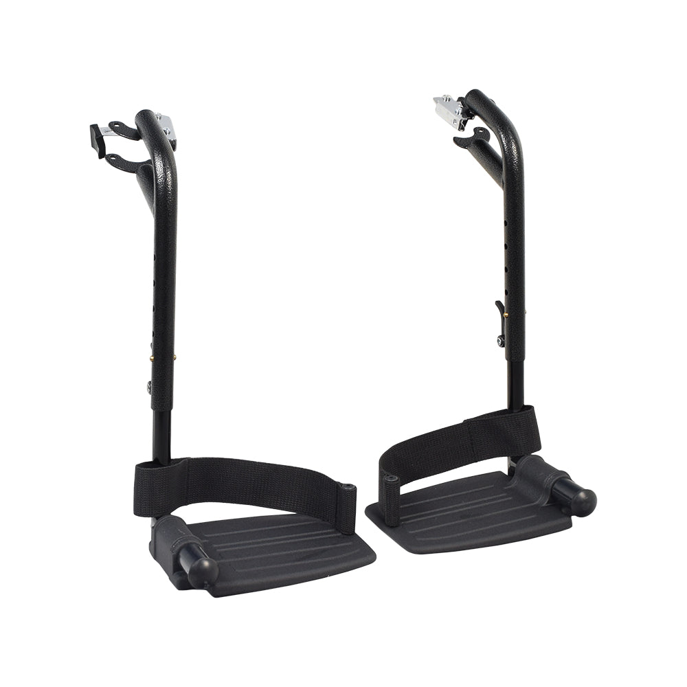 This set of two legrests allow the wheelchair users' lower legs to hang at a more natural angle.