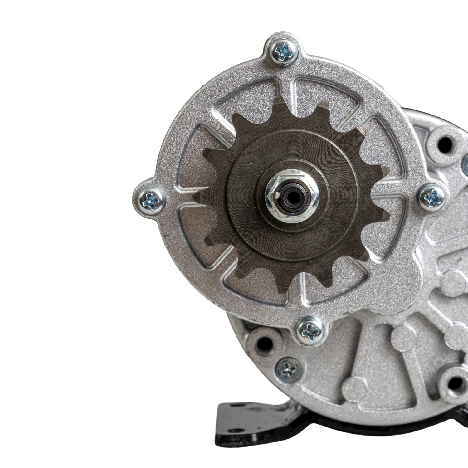 Note: The chain tensioner bracket and threaded shaft shown in the photographs (below and just to the right of the sprocket) are not included with this motor and you will need to reuse the old chain tensioner bracket.